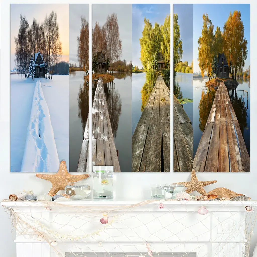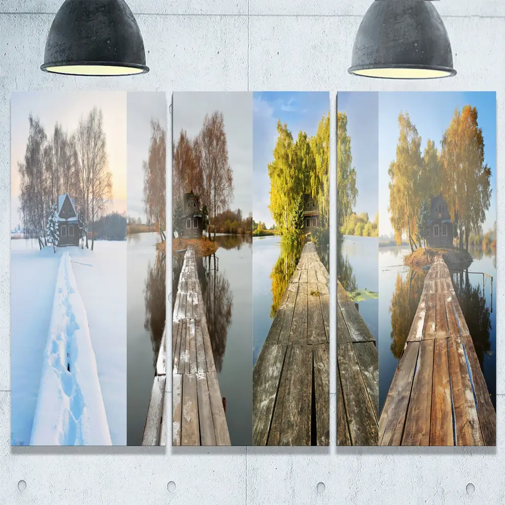 "Houses On Small Island Panorama" Metal Wall Art, 3 Panels, 36"x28"