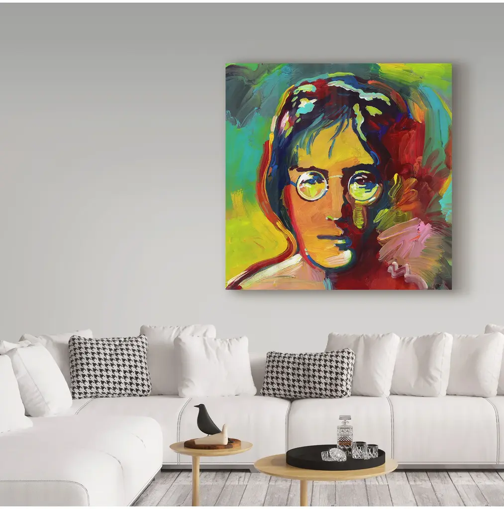 Artist: Howie GreenSubject: PeopleStyle: Bold & Eclectic ModernProduct Type: Gallery-Wrapped Canvas ArtMade in USAThis ready to hang, gallery-wrapped art piece features a colorful portrait of John Lennon.Howie Green came to international attention with the publication of his first book "Jazz Fish Zen". His work has garnered over 45 awards and won Absolut Vodka's 25th Anniversary art competition in Boston, MA. Howie's work has been featured in over 40 solo and group shows. He has created over 50 public art pieces and murals including 3 Cow Parade figures, a holiday mural for Boston City Hall, 4 giant golf balls for the PGA Tour in Rochester, NY, and 2 of his car designs were chosen as finalists in Volkswagen Polo's design competition in Copenhagen, Denmark.Giclee (jee-clay) is an advanced printmaking process for creating high quality fine art reproductions. The attainable excellence that Giclee printmaking affords makes the reproduction virtually indistinguishable from the original piece. The result is wide acceptance of Giclee by galleries, museums, and private collectors. Gallery wrap is a method of stretching an artist's canvas so that the canvas wraps around the sides and is secured a hidden, wooden frame. This method of stretching and preparing a canvas allows for a frameless presentation of the finished painting.