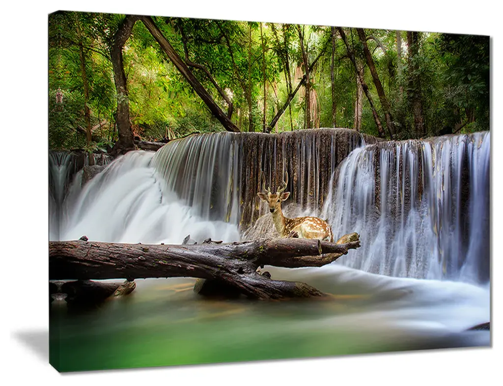 The Huai Mae Kamin Waterfall Photo canvas art print is sure to make an impression on anyone who sees it. This artwork is gallery wrapped around a 1-inch solid wood frame and arrives carefully packaged and entirely ready to hang on the wall. Design Art only uses the highest resolution and pigments to ensure a crisp colorful print that is never faded or pixelated. This artwork is sure to be a conversation starter in any home or office.