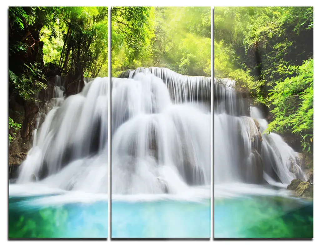 "Huai Mae Kamin Waterfall" Canvas Photo Print, 5 Panels, 60"x28"