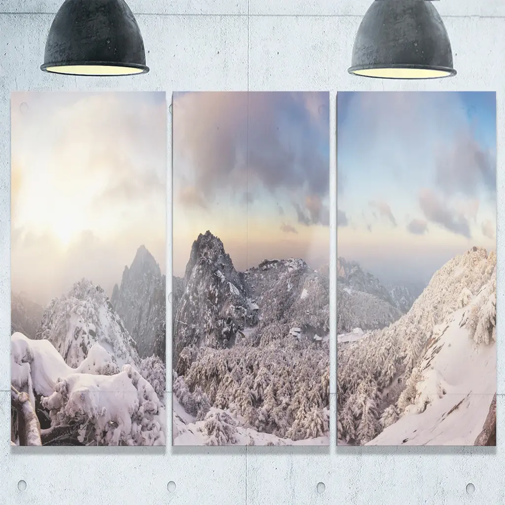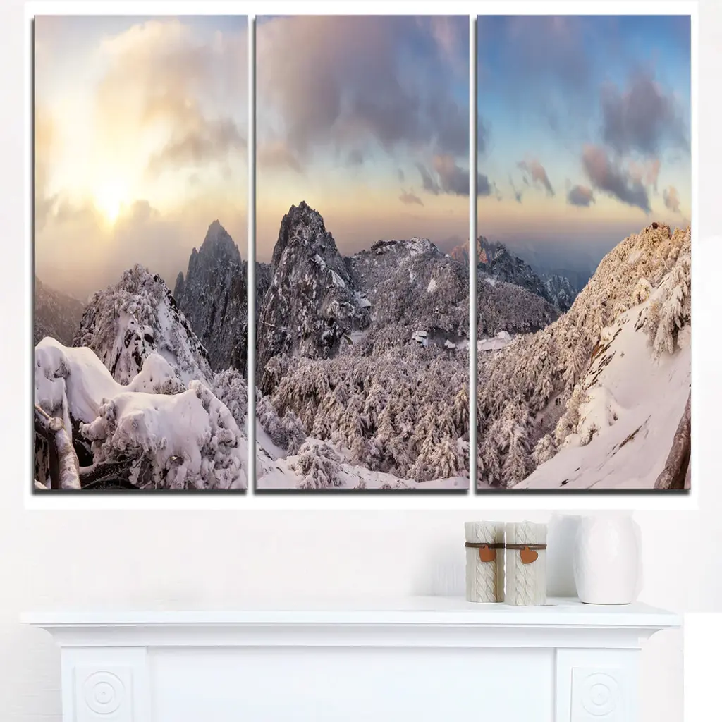 "Huangshan Hill Snow In Winter" Oversized Metal Wall Art, 3 Panels, 36"x28"