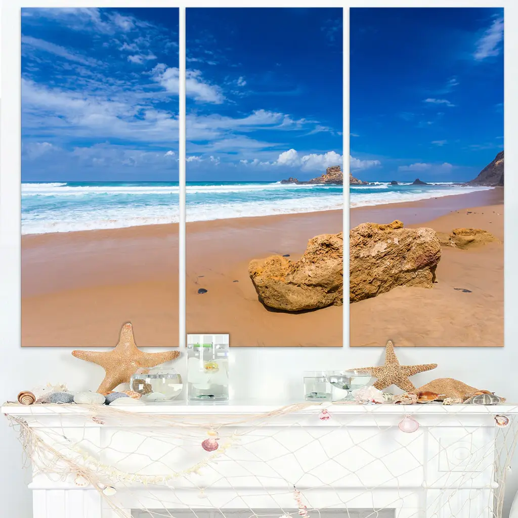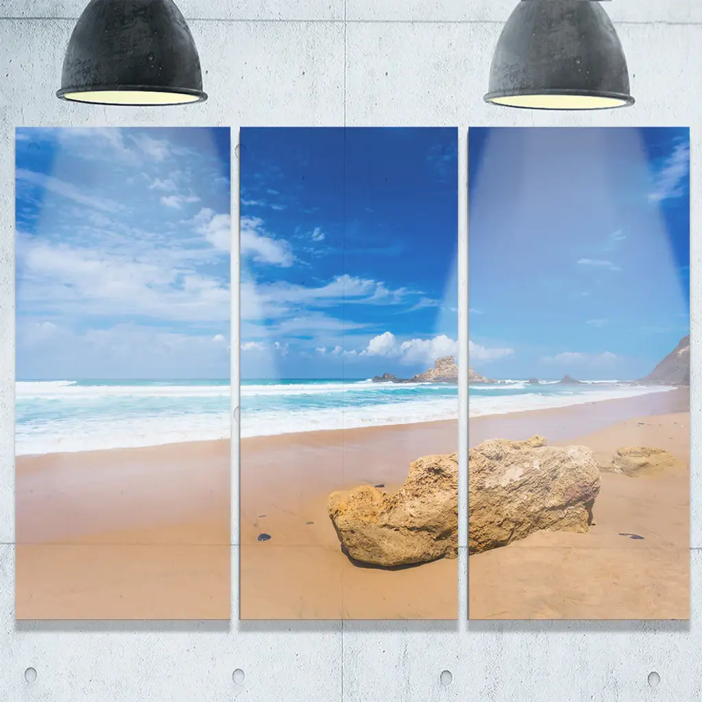 "Huge Brown Rock In Atlantic Seashore" Metal Wall Art, 3 Panels, 36"x28"