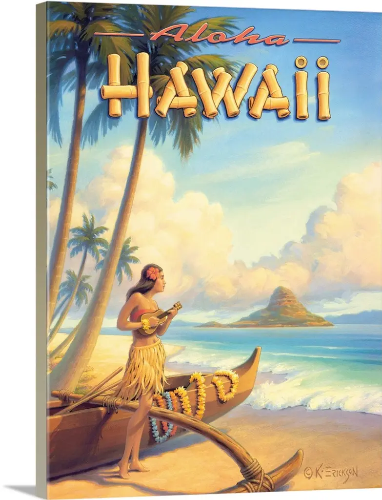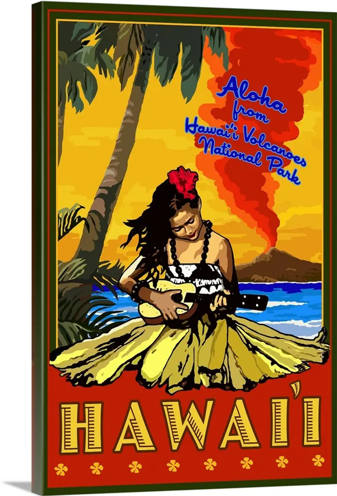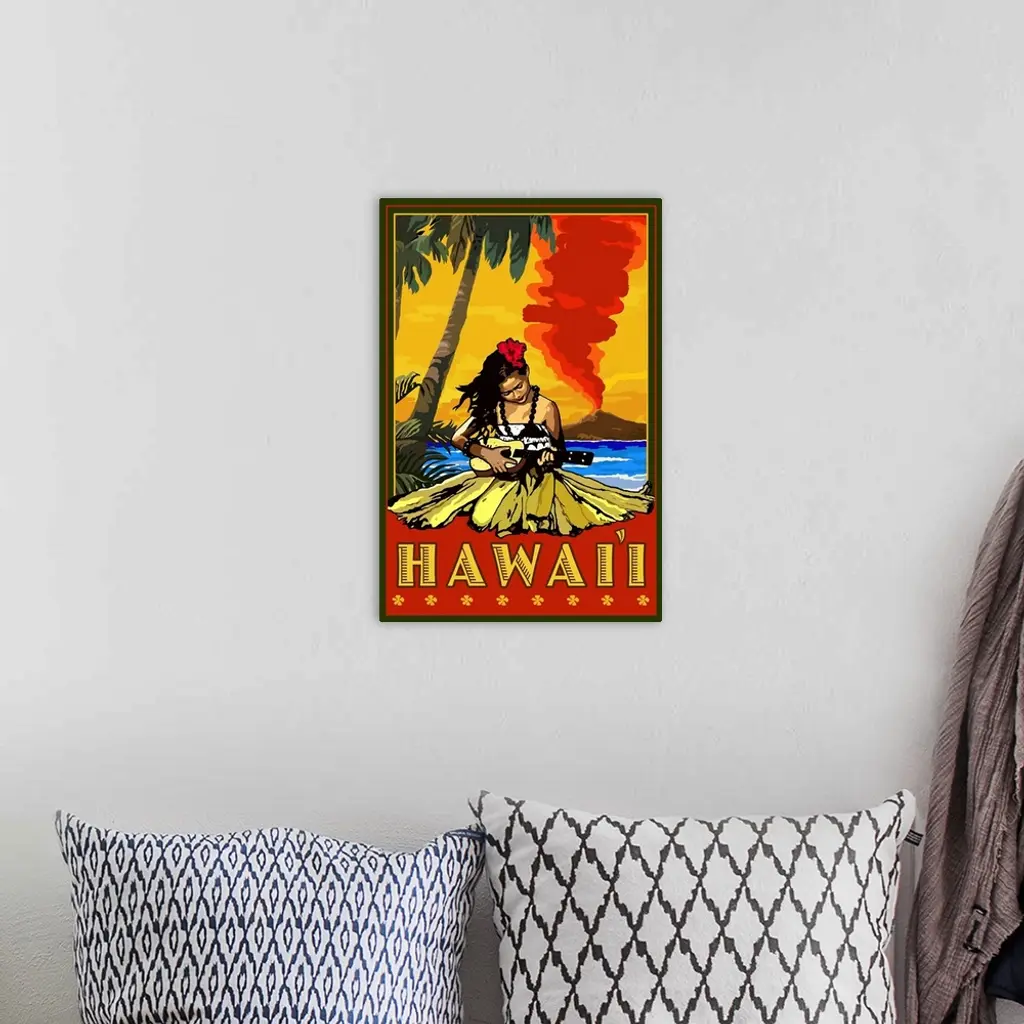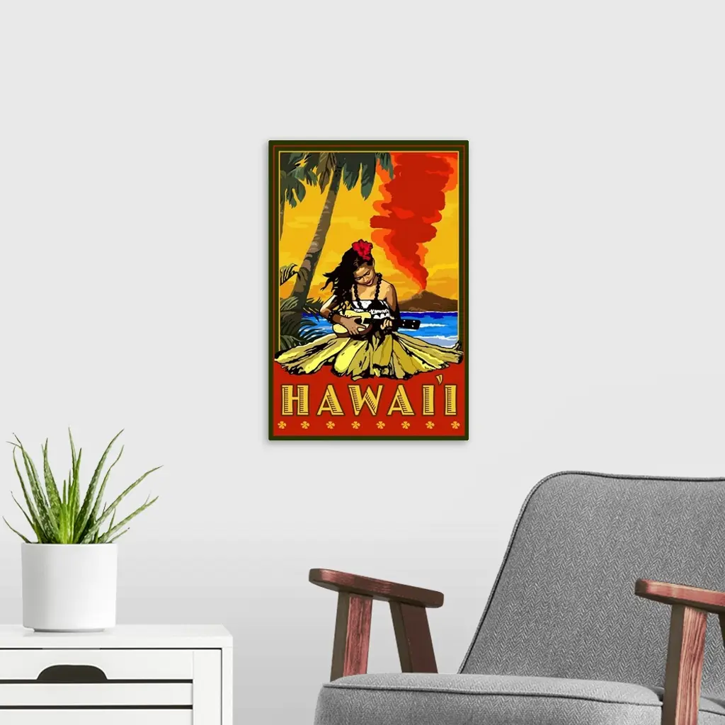 Hula Girl and Ukulele - Hawaii: Retro Travel Poster wall art for home and office decor. Discover canvas art prints, photos, mural, big canvas art and framed wall art in GreatBigCanvas.com's varied collections.