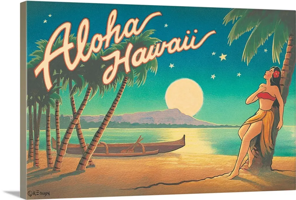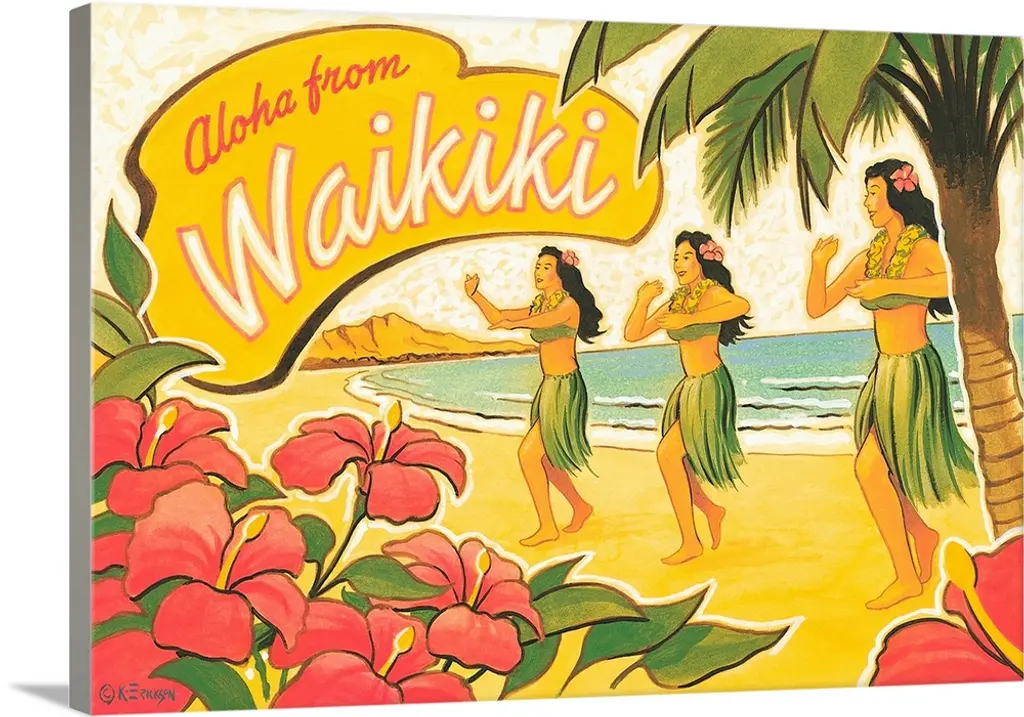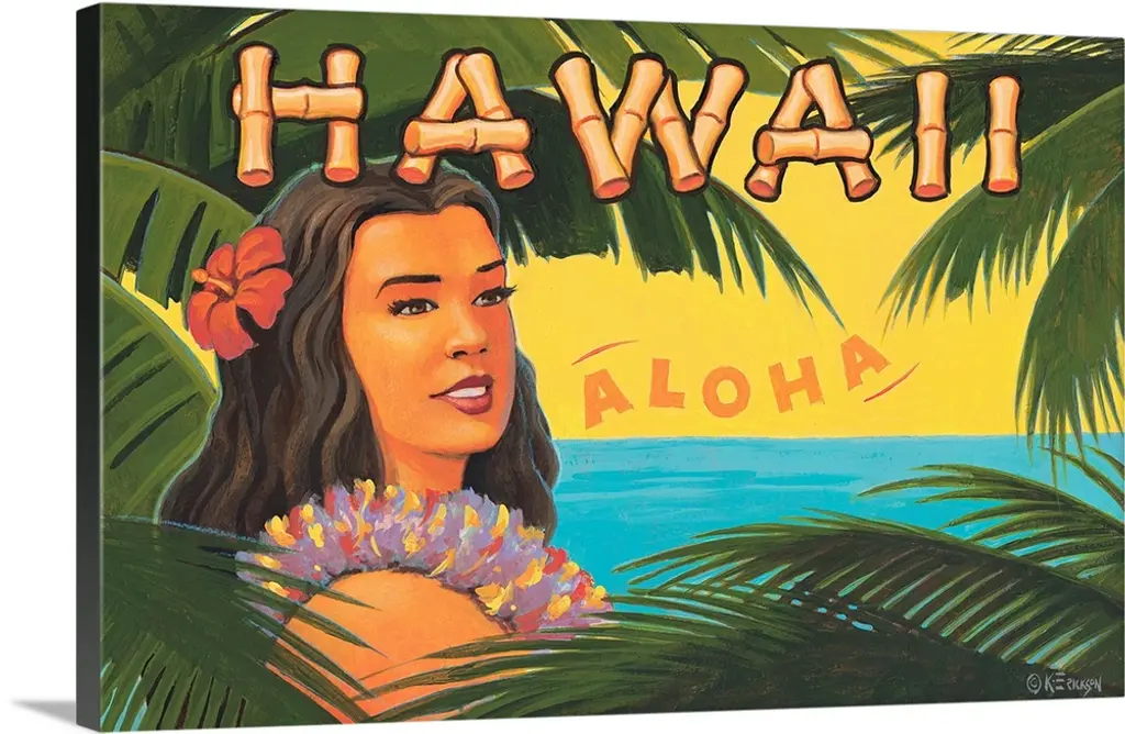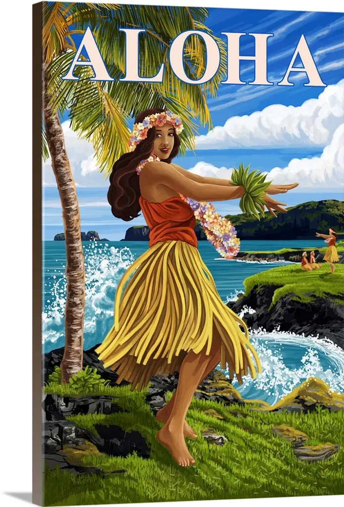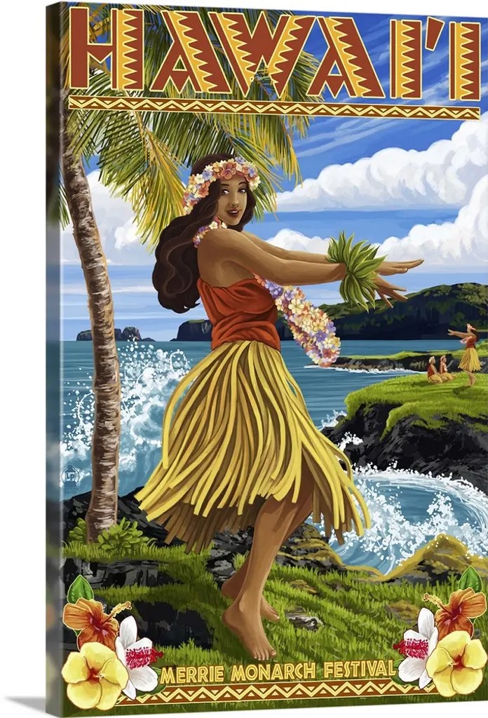 Hula Girl and Ukulele - Hawaii: Retro Travel Poster wall art for home and office decor. Discover canvas art prints, photos, mural, big canvas art and framed wall art in GreatBigCanvas.com's varied collections.