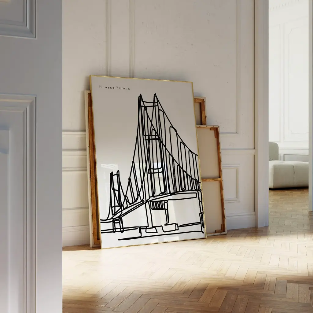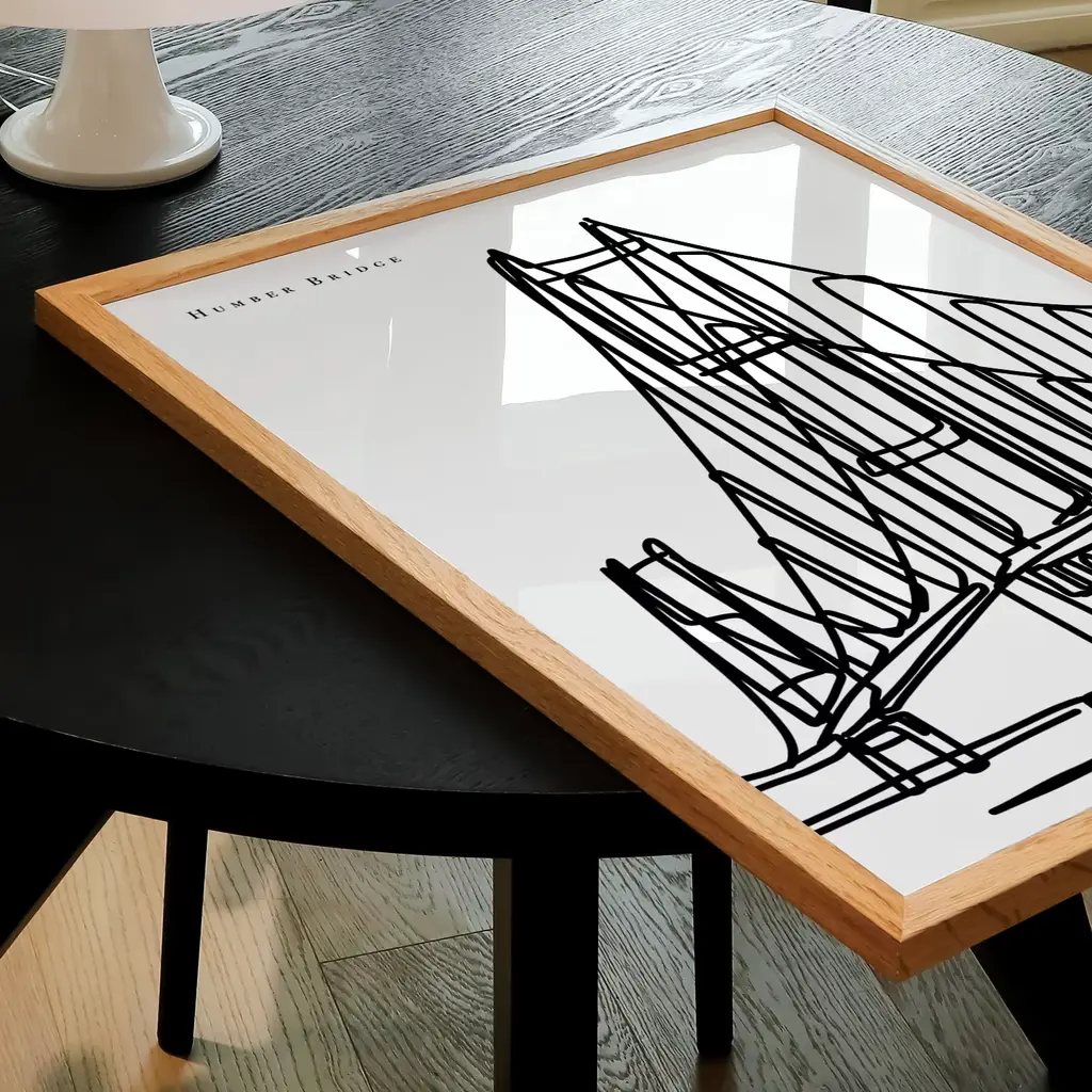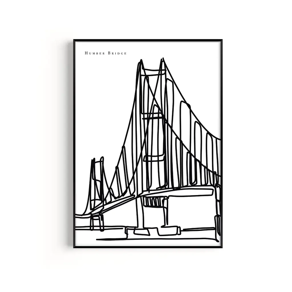 Humber Bridge Art Print - A2The perfect gift for someone with a connection to Hull! Drawn in a black and white contemporary line drawing style. Prints are digitally designed by myself and printed to order.Smooth fine art 230 gsm matte card. Printed with vivid colour and detail. Sold without a frame.