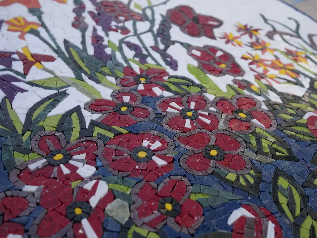 Introducing the exquisite "Humming Birds In Spring - Mosaic Art," a stunning piece that captures the essence of nature's beauty in a captivating design. This handmade mosaic art showcases a charming couple of hummingbirds, elegantly adorned with delicate flowers and lush green leaves, creating a harmonious scene that is both vibrant and serene.Crafted with meticulous attention to detail, each piece of this Humming Birds Mosaic In Spring is made from natural marble stones, ensuring that every mosaic art item is unique and exudes a sense of authenticity. The combination of colorful stones brings the hummingbirds to life, allowing their graceful forms to stand out against the soft, natural backdrop of blooming flora and verdant leaves.This artwork is not just a decor piece; it's a celebration of spring, symbolizing renewal and the joy of nature. The intricately designed mosaic will add a touch of elegance and sophistication to your home, making it a perfect addition to any living space, garden, or entryway. Whether you're an art lover, a nature enthusiast, or simply looking to enhance your decor, the "Humming Birds In Spring - Mosaic Art" will captivate your heart and inspire admiration from guests.Ideal as a thoughtful gift for birthdays, anniversaries, or special occasions, this mosaic art piece will bring joy and a sense of tranquility to any environment. Embrace the beauty of springtime and the enchanting presence of hummingbirds in your home with this stunning mosaic art creation. Elevate your space with the natural elegance of the "Humming Birds Mosaic In Spring" and let the vibrant colors and intricate designs transform your surroundings into a serene oasis of beauty.
