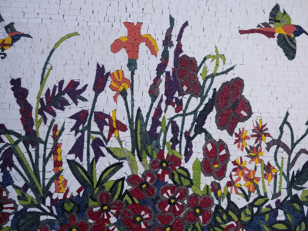 Humming Birds In Spring - Mosaic Art - 80cm X 60cm (31" X 24") / Without Frame