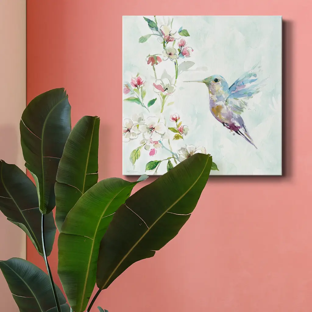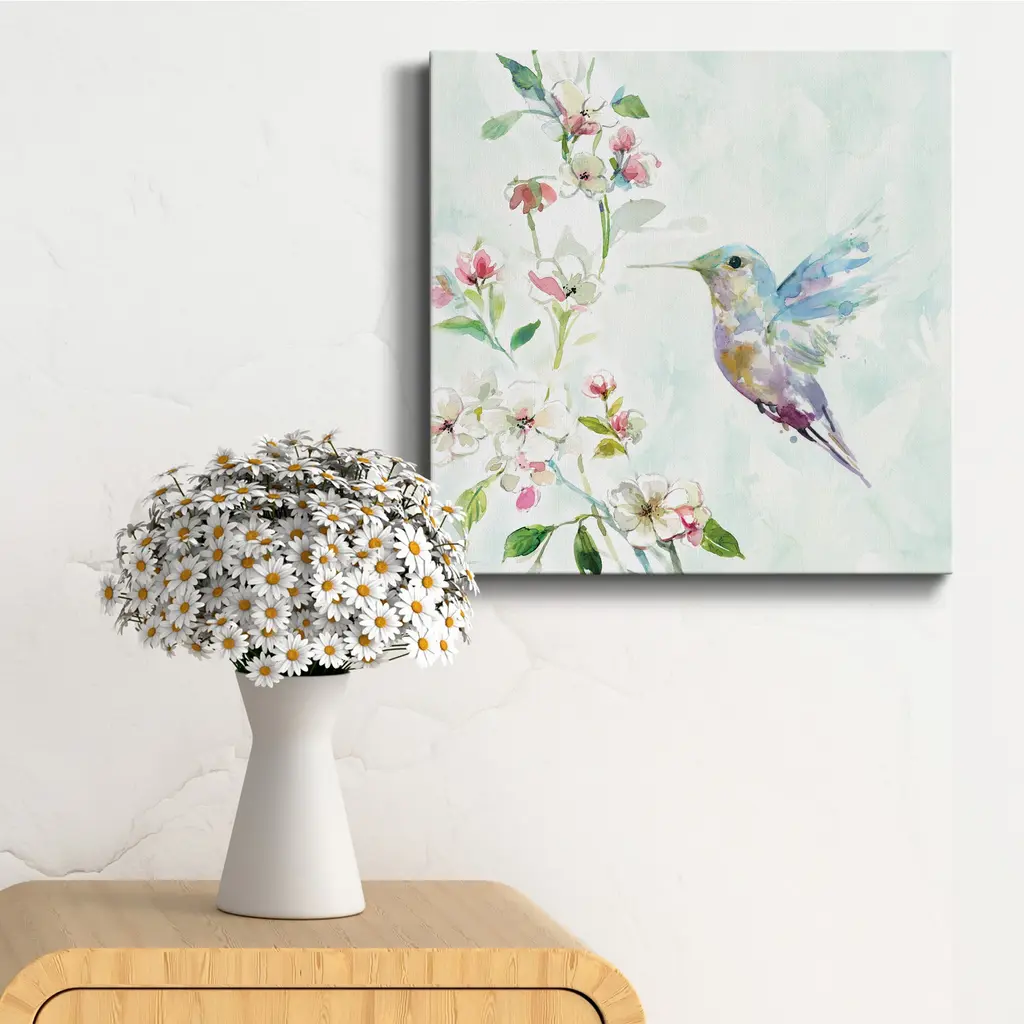 Hummingbird II-Premium Gallery Wrapped Canvas - Ready to Hang A premium hand stretched gallery wrapped canvas print created to last. Featuring a beveled a solid wood stretcher bar, each piece comes ready to hand 5 SIZES AVAILABLE 10''X10'' - Overall Size 16''x16'' - Overall Size 24''x24'' - Overall Size 32''x32'' - Overall Size 40''x40'' - Overall Size Each piece is made to order. Built to Last Each piece comes ready to hang Solid wood stretcher Fade and Water resistant Made domestically