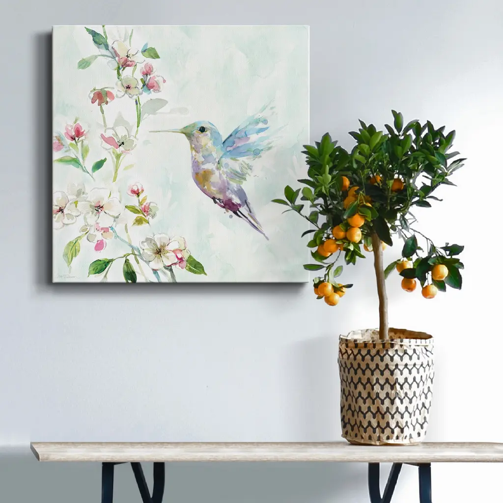 Hummingbird II-Premium Gallery Wrapped Canvas - Ready to Hang A premium hand stretched gallery wrapped canvas print created to last. Featuring a beveled a solid wood stretcher bar, each piece comes ready to hand 5 SIZES AVAILABLE 10''X10'' - Overall Size 16''x16'' - Overall Size 24''x24'' - Overall Size 32''x32'' - Overall Size 40''x40'' - Overall Size Each piece is made to order. Built to Last Each piece comes ready to hang Solid wood stretcher Fade and Water resistant Made domestically
