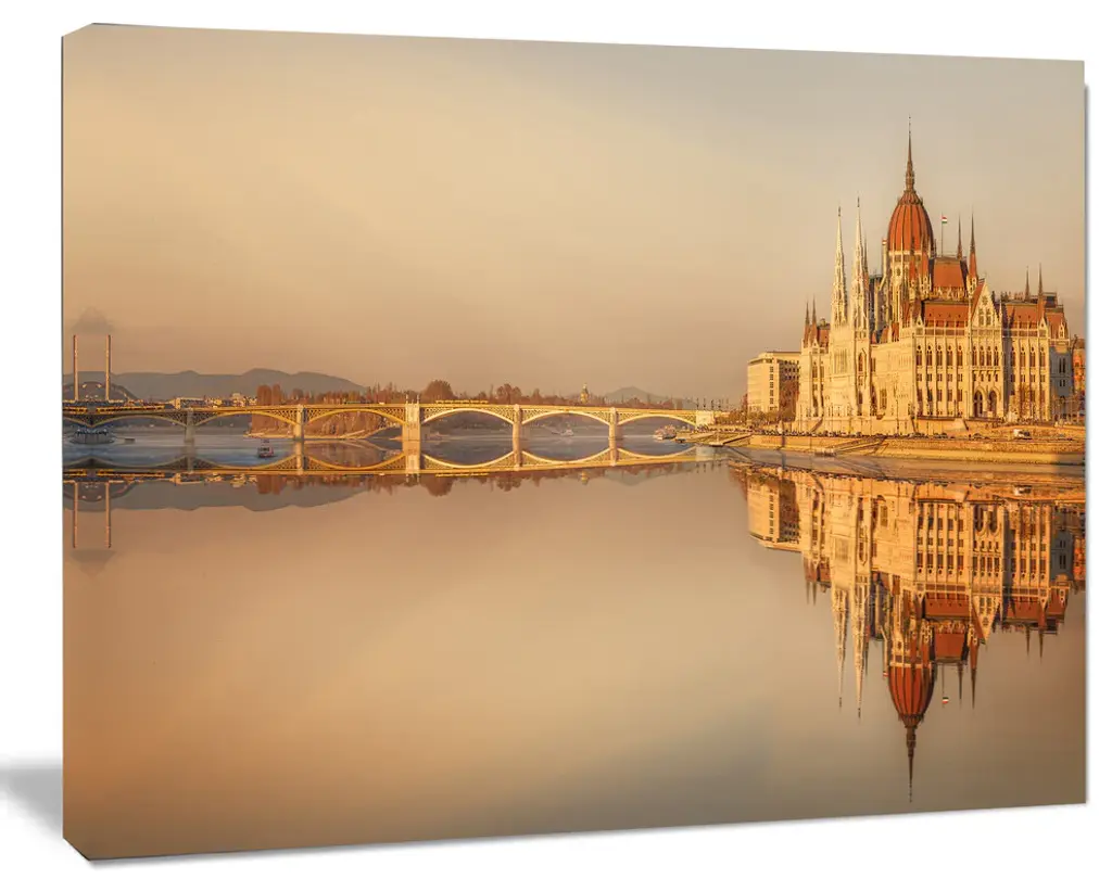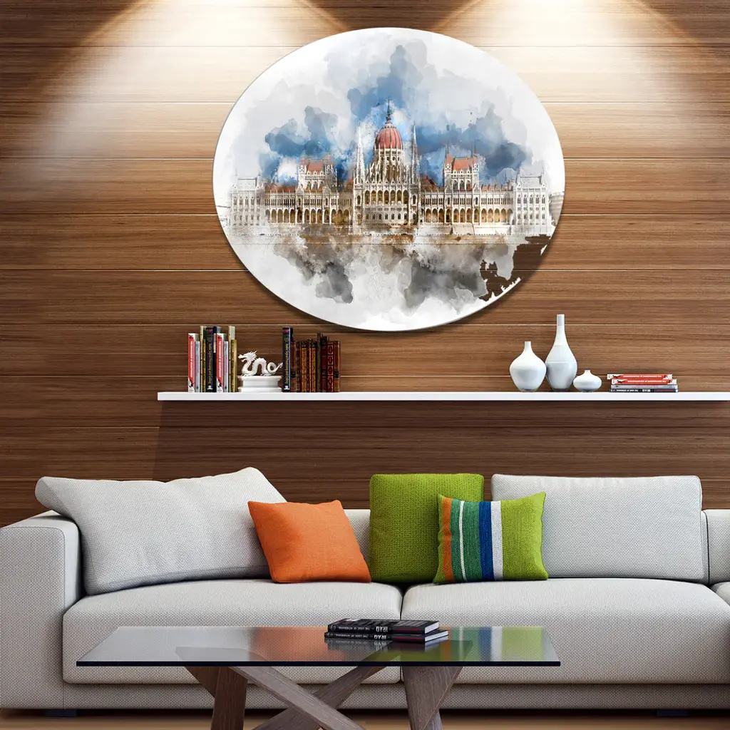 Hungarian Parliament Building, Cityscape Wall Round Metal Wall Art, 11"