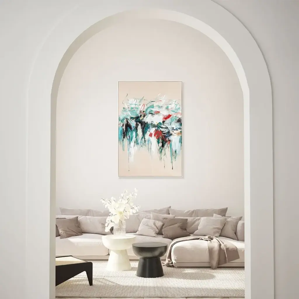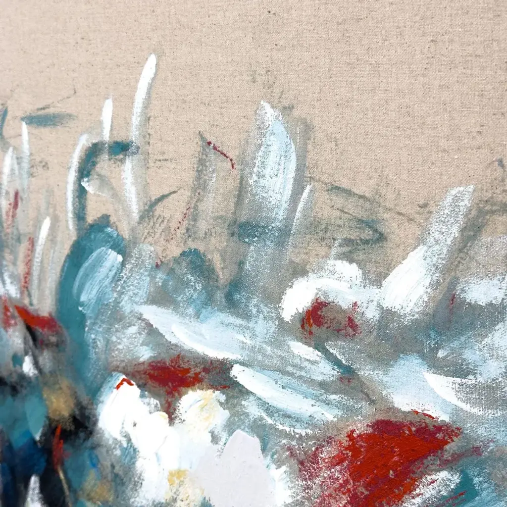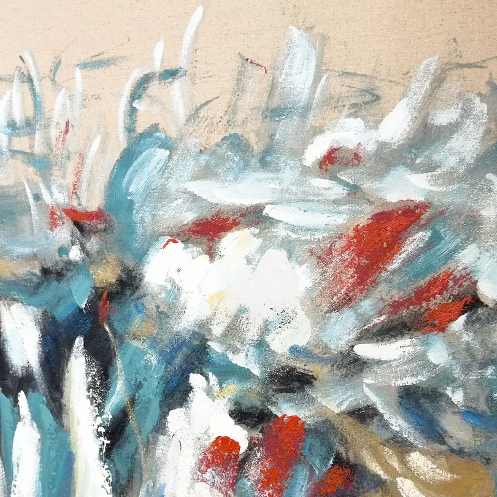 Hurricane is a hand-painted abstract painting on canvas. Broad multicolored brushstrokes in shades of blue, white, black, and red are interwoven on a rough-textured background and give this artwork great personality. With a wooden inner frame and wooden frame, the painting is ready to hang.The AGAVE Quadri collection represents the excellence of contemporary art applied to the world of interior design. Each piece, hand-painted with artisanal techniques by the finest artists in collaboration with the Italian company AGAVE, combines abstract, natural, and figurative elements to create unique and refined works. These paintings transform spaces into environments of great elegance and character, perfect for interior design projects that require a distinctive and artistic touch.