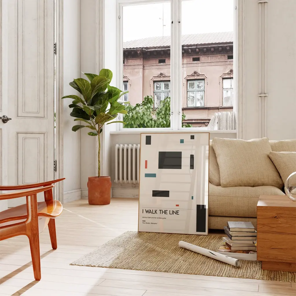 I walk the line abstract art print, inspired by the rock n roll rebel Johnny Cash. Pair with green plants and mid century furniture for the ultimate retro inspired style.Sold without frameGiclée printed on Munken pure smooth cream paper which is certified by the Rainforest Alliance Program for FSC® Standards.