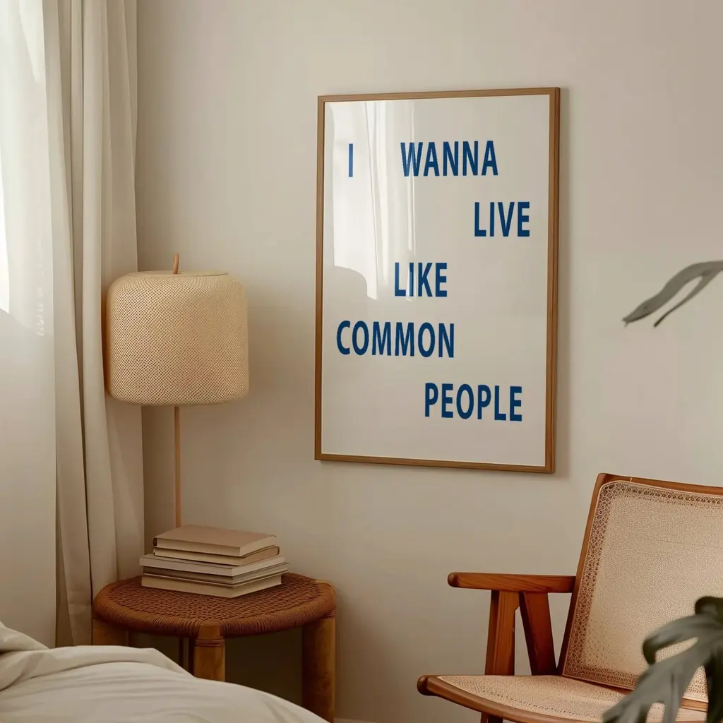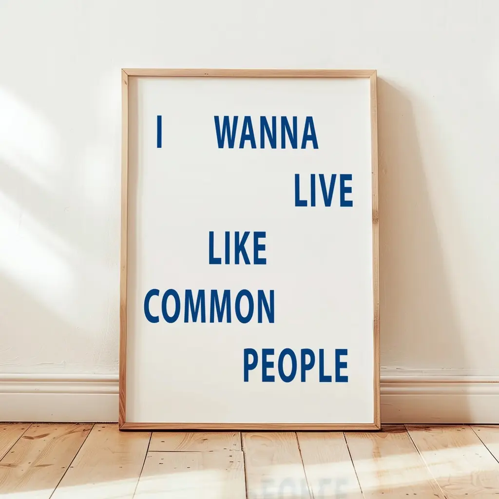 I Wanna Live Like Common People Art PrintAvailable in sizes A2 (420 x 594 mm)A3 (297 x 420 mm)A4 (210 x 297 mm) All in the detailsSold without frameDesigned by Fanclub owners and sisters, Johanna and Felicity.Giclée printed in Nottingham UK on Munken pure smooth cream paper which is certified by the Rainforest Alliance Program for FSC® Standards.All A4 & A3 prints are packed in eco friendly 100% biodegradable poly bags A2 prints are shipped in cardboard tubes.Designed by Fanclub owners and sisters, Johanna and Felicity in our UK studio.