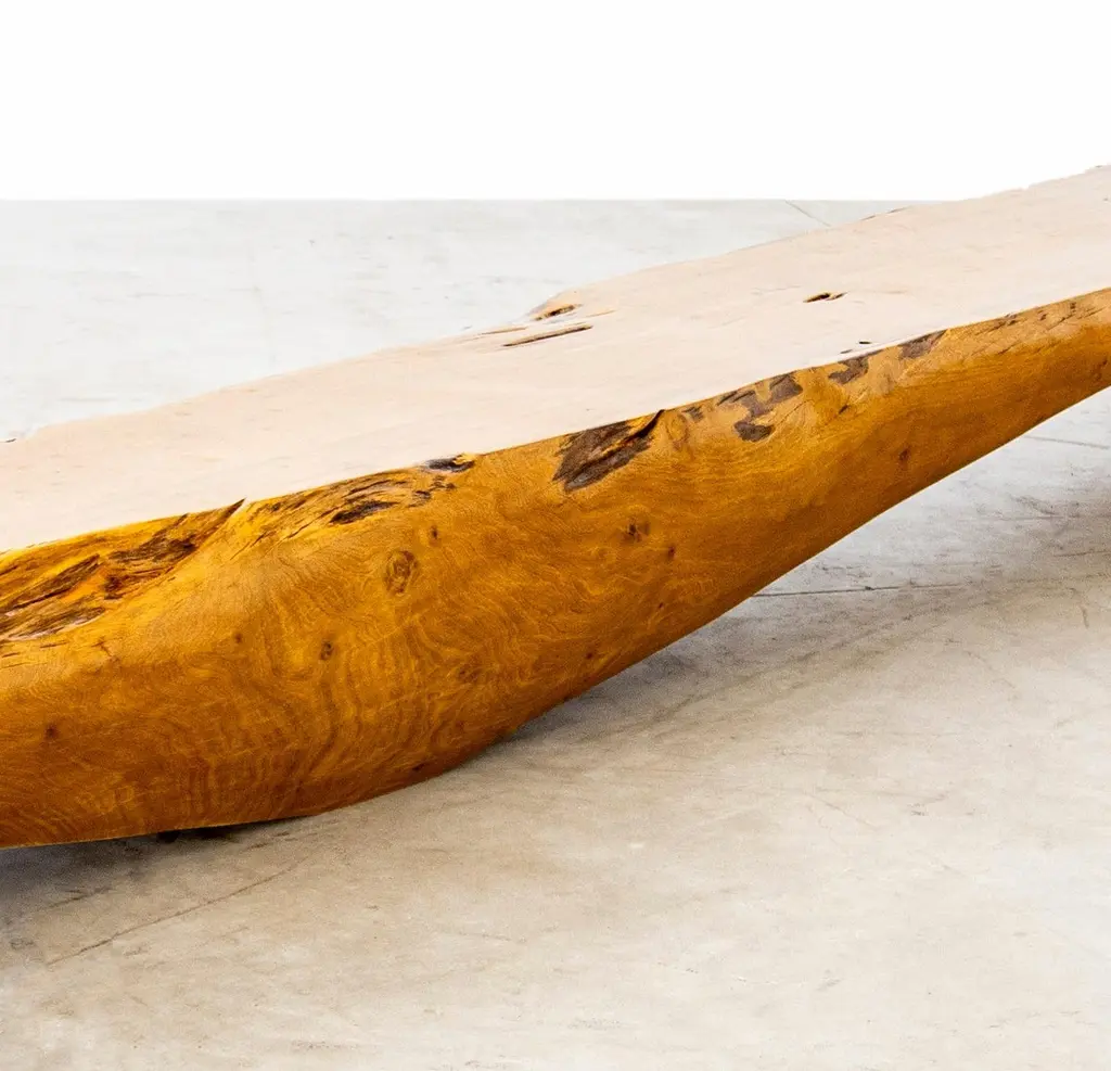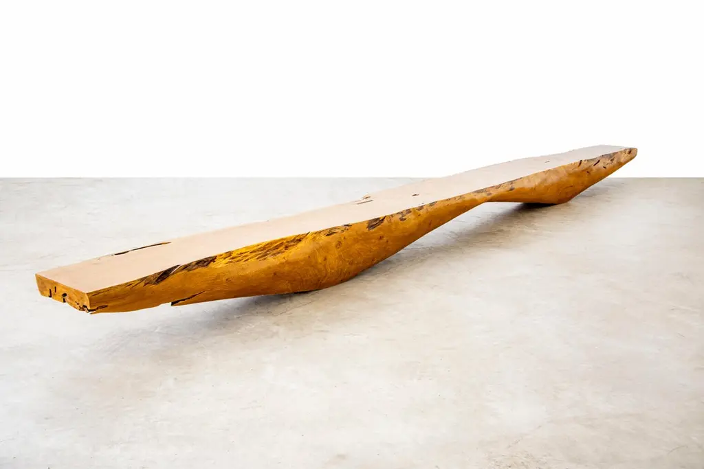 Ibatiba Bench in Pequi Wood by Hugo FrançaDimensions: D 50 x W 715,5 x H 41,9 cm. Materials: Pequi wood.Dimensions may vary. Please contact us.Atelier Hugo França's principle is to transform trunks, roots, and parts of trees that are generally rejected.This raw material is stored at the atelier in Trancoso, then chosen by Hugo França according to its texture and organic shape for various projects.The artist's creative process starts from such dialogue with the raw material, and he draws directly on wood, following the paths created by nature.In production, we reframe the use of the chainsaw by carving trunks and roots and giving the artworks a sustainable and sculptural content.