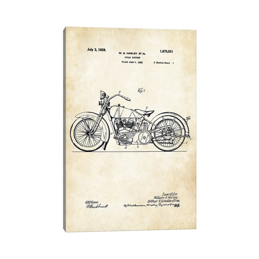 Icanvas "1928 Harley Davidson Motorcycle" By Patent77 Canvas Print - 40x26x1.5