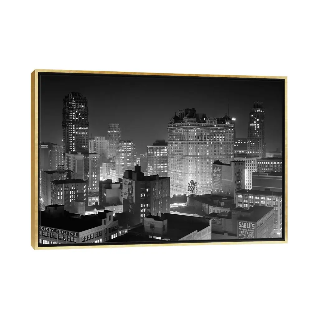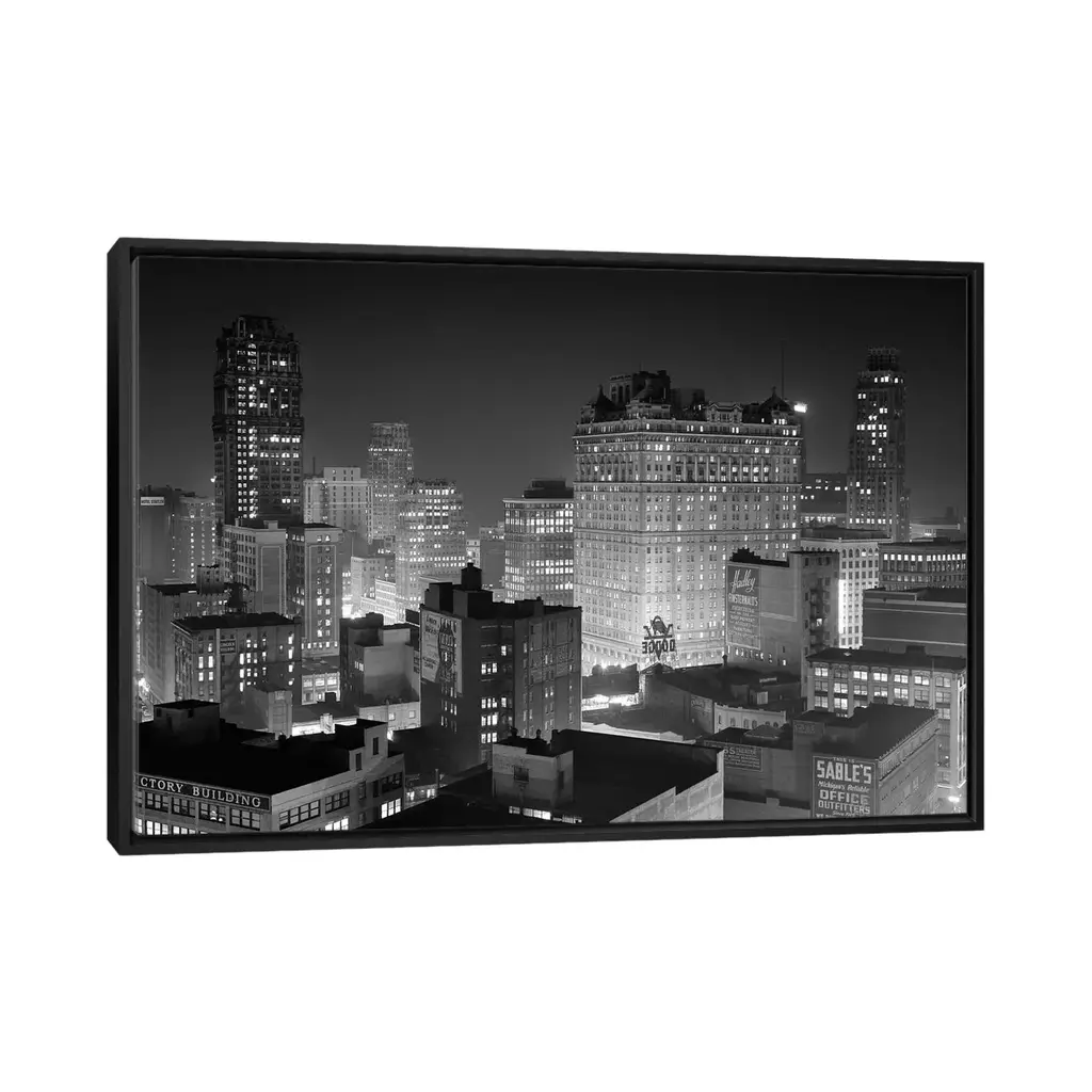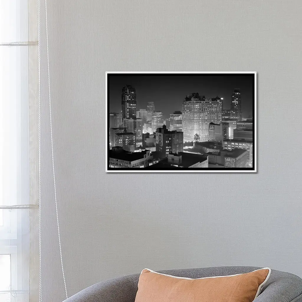 Icanvas "1954 Night Skyline Retail Business Area Detroit Michigan Usa" By Vintage Images Framed Canvas Print - Black - 26x40