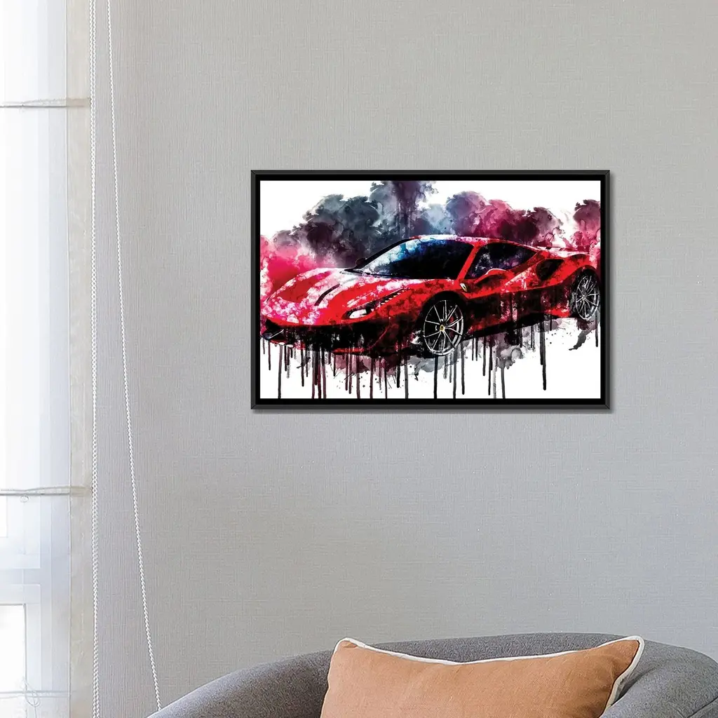 Icanvas "2018 Ferrari 488 Pista" By Sissy Angelastro Framed Canvas Print - Black - 32x48