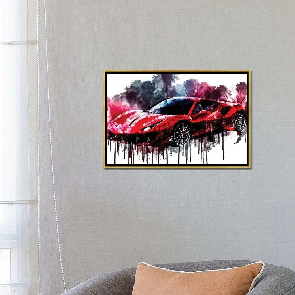 Icanvas "2018 Ferrari 488 Pista" By Sissy Angelastro Framed Canvas Print - White - 32x48