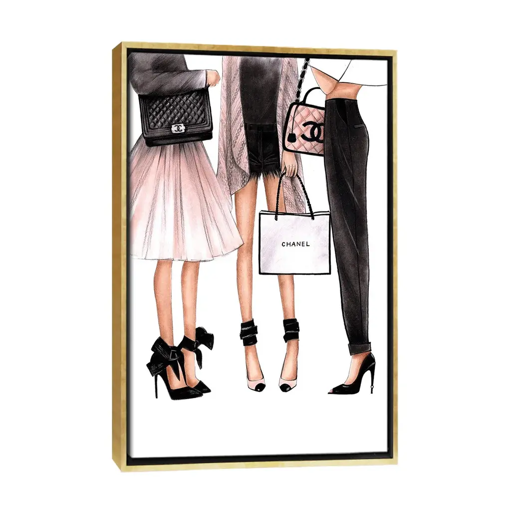 Icanvas "3 Ladies" By Lalana Arts Framed Canvas Print - Gold - 26x18