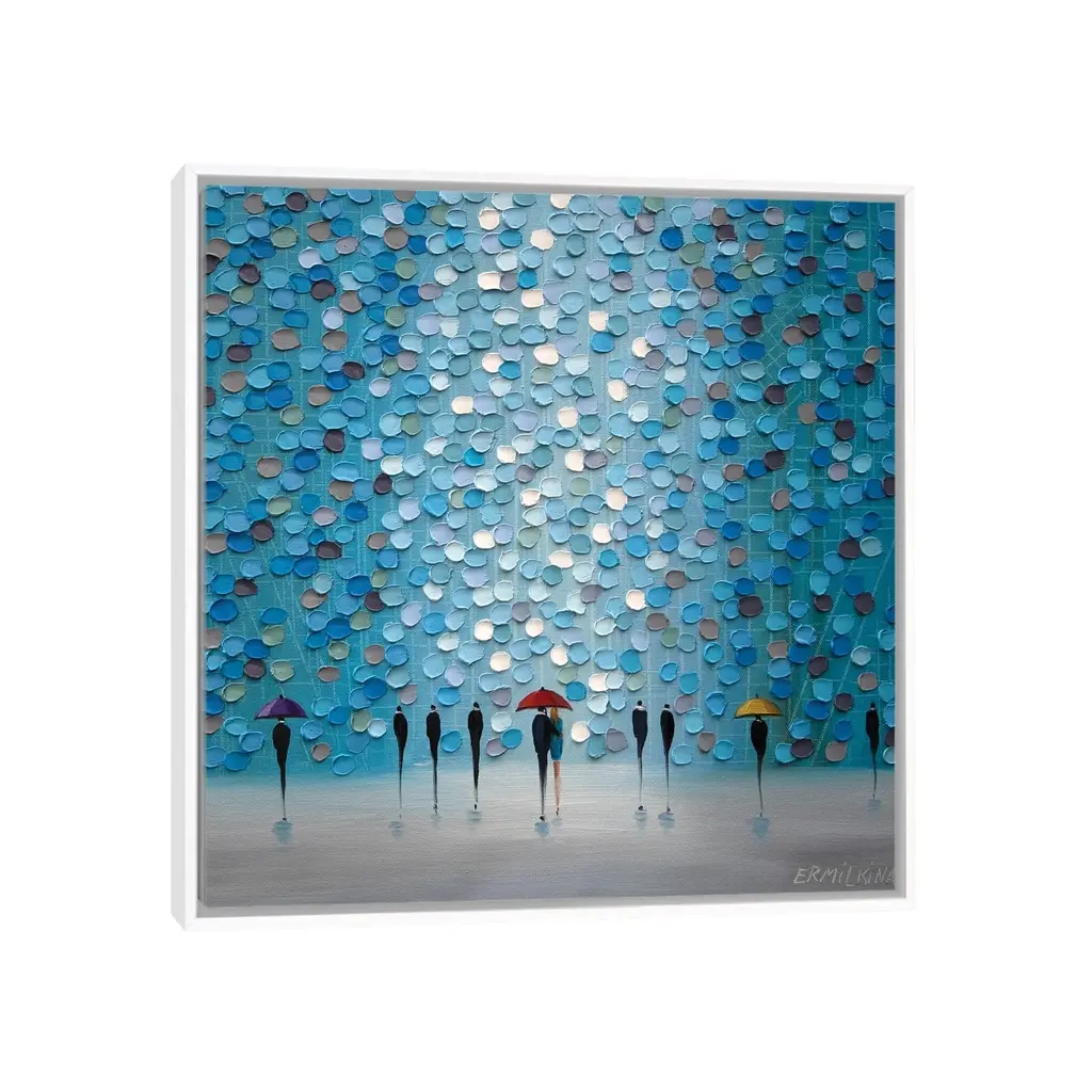 Icanvas "3 Tiny Umbrellas" By Ekaterina Ermilkina Framed Canvas Print - 12x12 - Gold