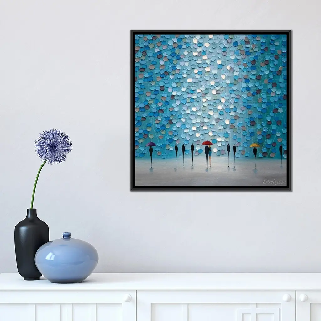 Icanvas "3 Tiny Umbrellas" By Ekaterina Ermilkina Framed Canvas Print - 18x18 - Black