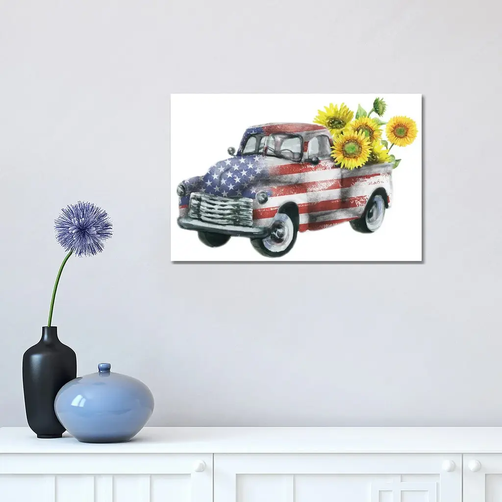 Icanvas "4th Of July Truck With Sunflowers" By Ephrazy Graphics Canvas Print - 8X12x0.75