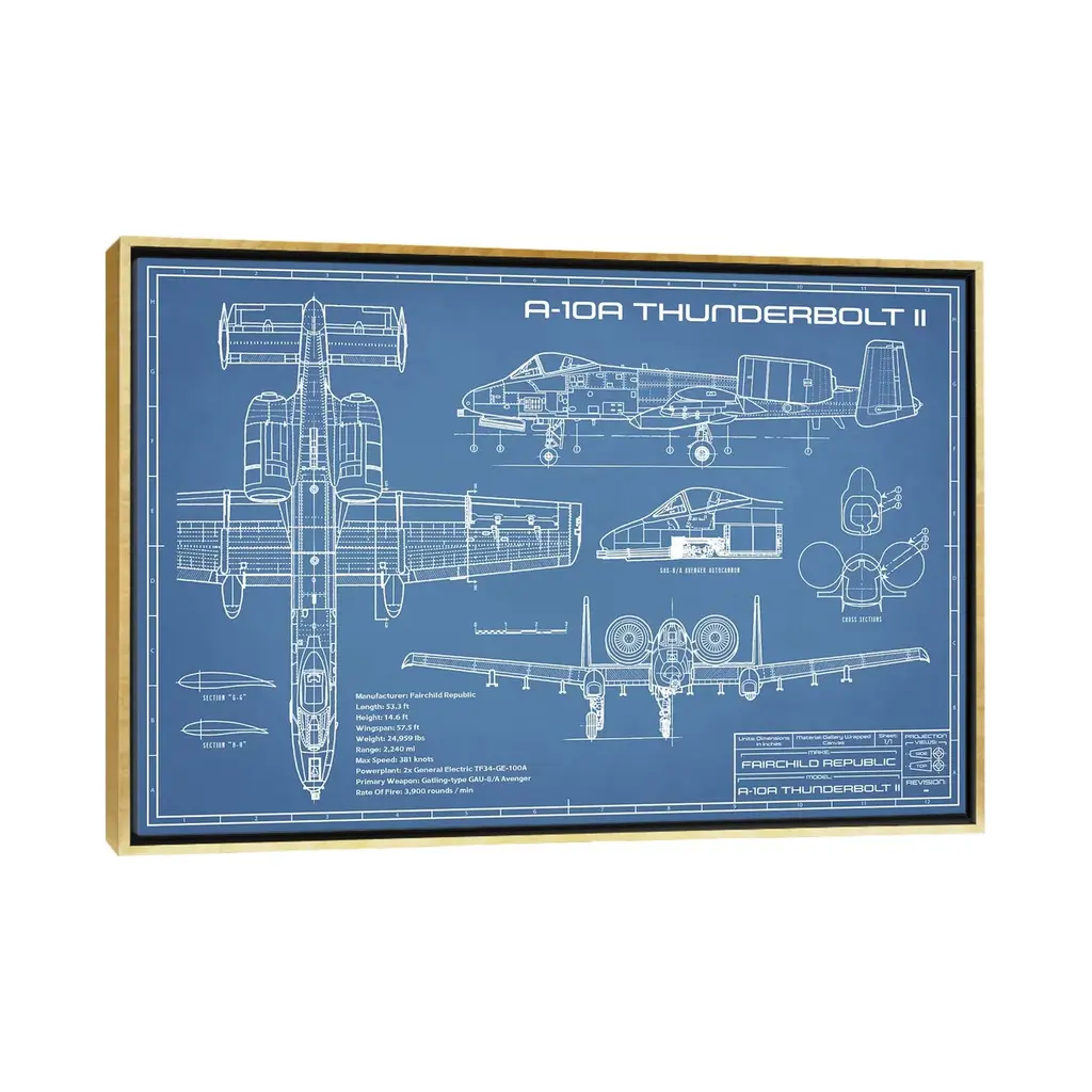 Icanvas "A-10 Thunderbolt Ii (Warthog) Airplane Blueprint" By Action Blueprints Framed Canvas Print - Gold - 18x26