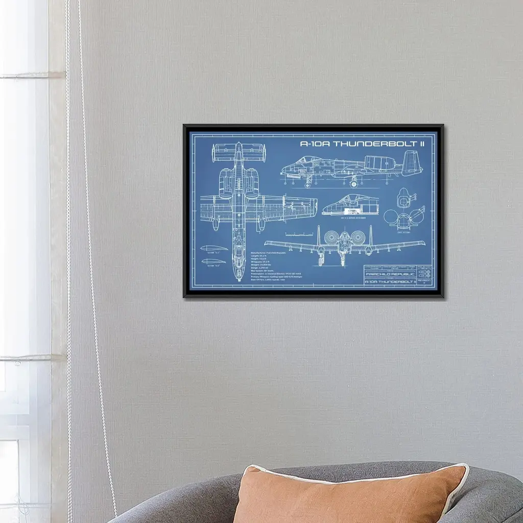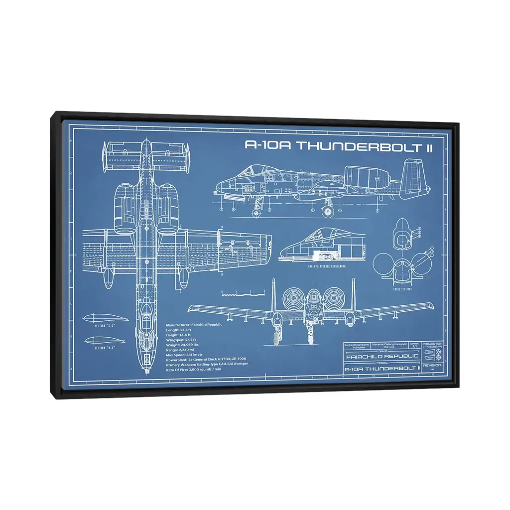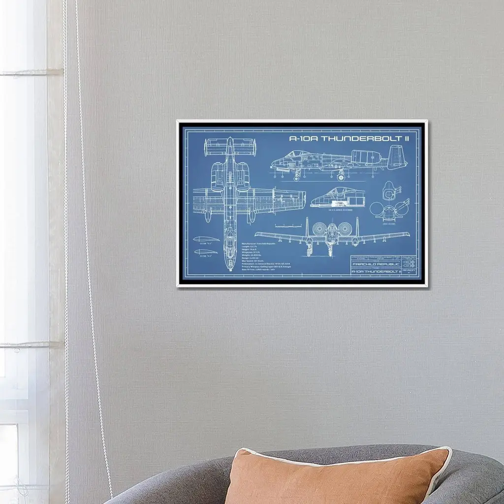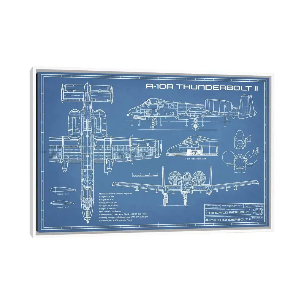 Icanvas "A-10 Thunderbolt Ii (Warthog) Airplane Blueprint" By Action Blueprints Framed Canvas Print - Gold - 32x48