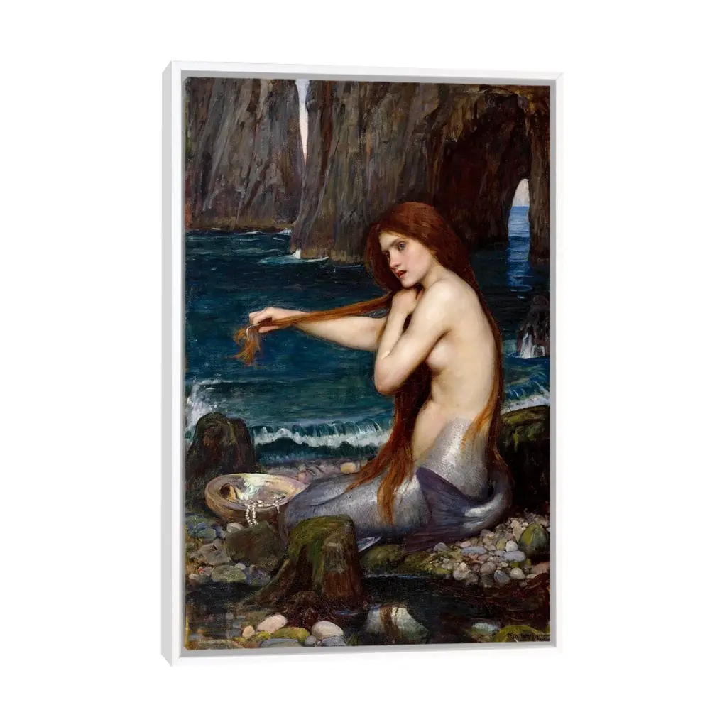 Icanvas "A Mermaid" By John William Waterhouse Framed Canvas Print - White - 26x18