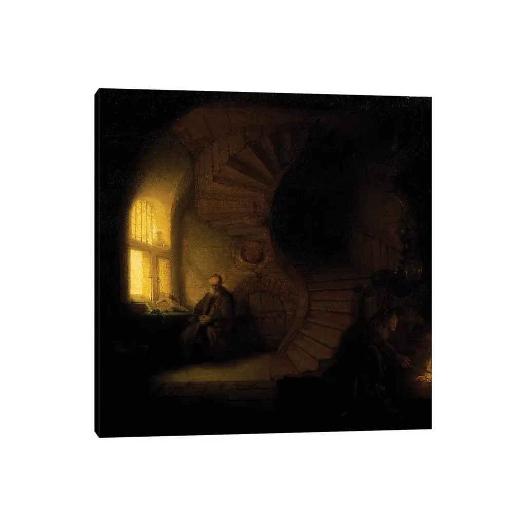 Icanvas "A Philosopher In Meditation " By Rembrandt Van Rijn Canvas Print - 18x18x1.5