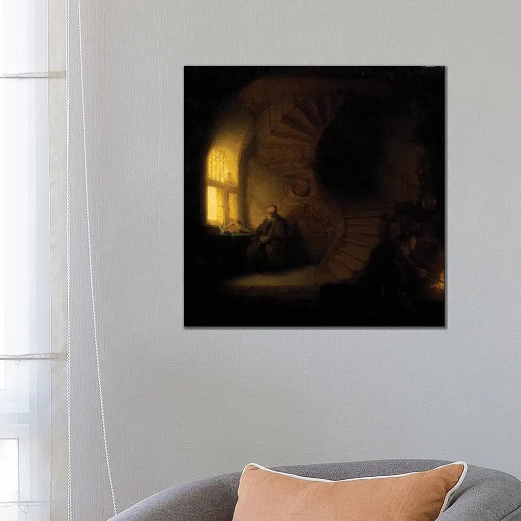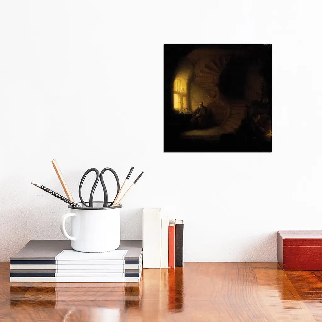 Icanvas "A Philosopher In Meditation " By Rembrandt Van Rijn Canvas Print - 26x26x1.5