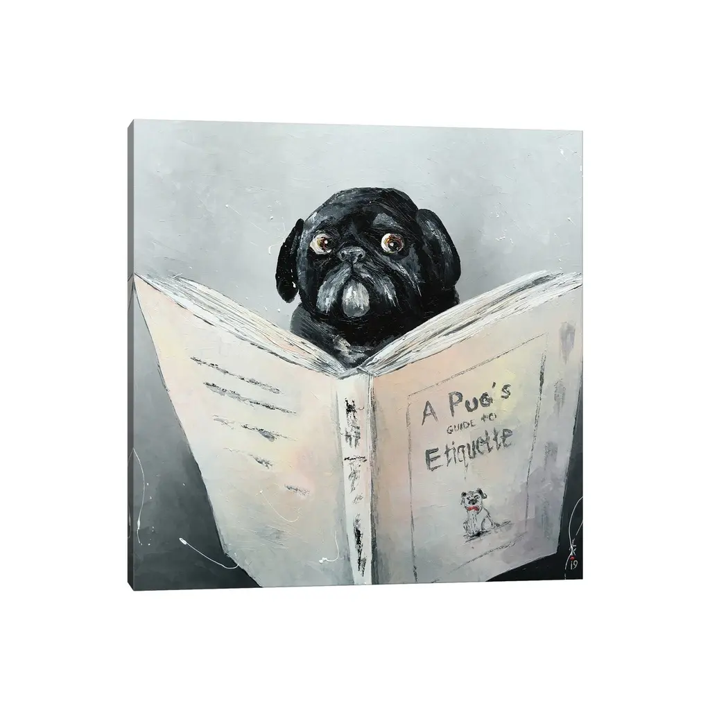 Icanvas "A Pug's Guide To Etiquette" By Kuptsovaart Canvas Print - 26x26x1.5