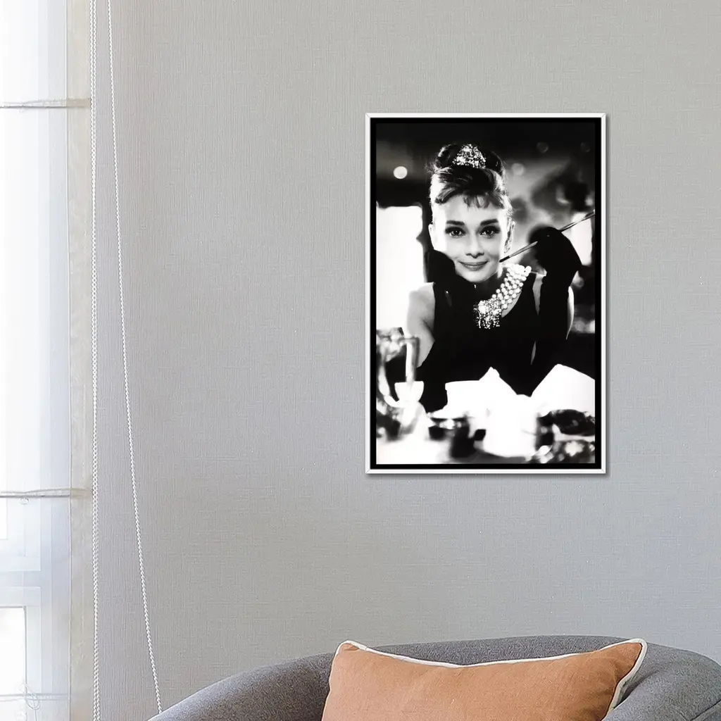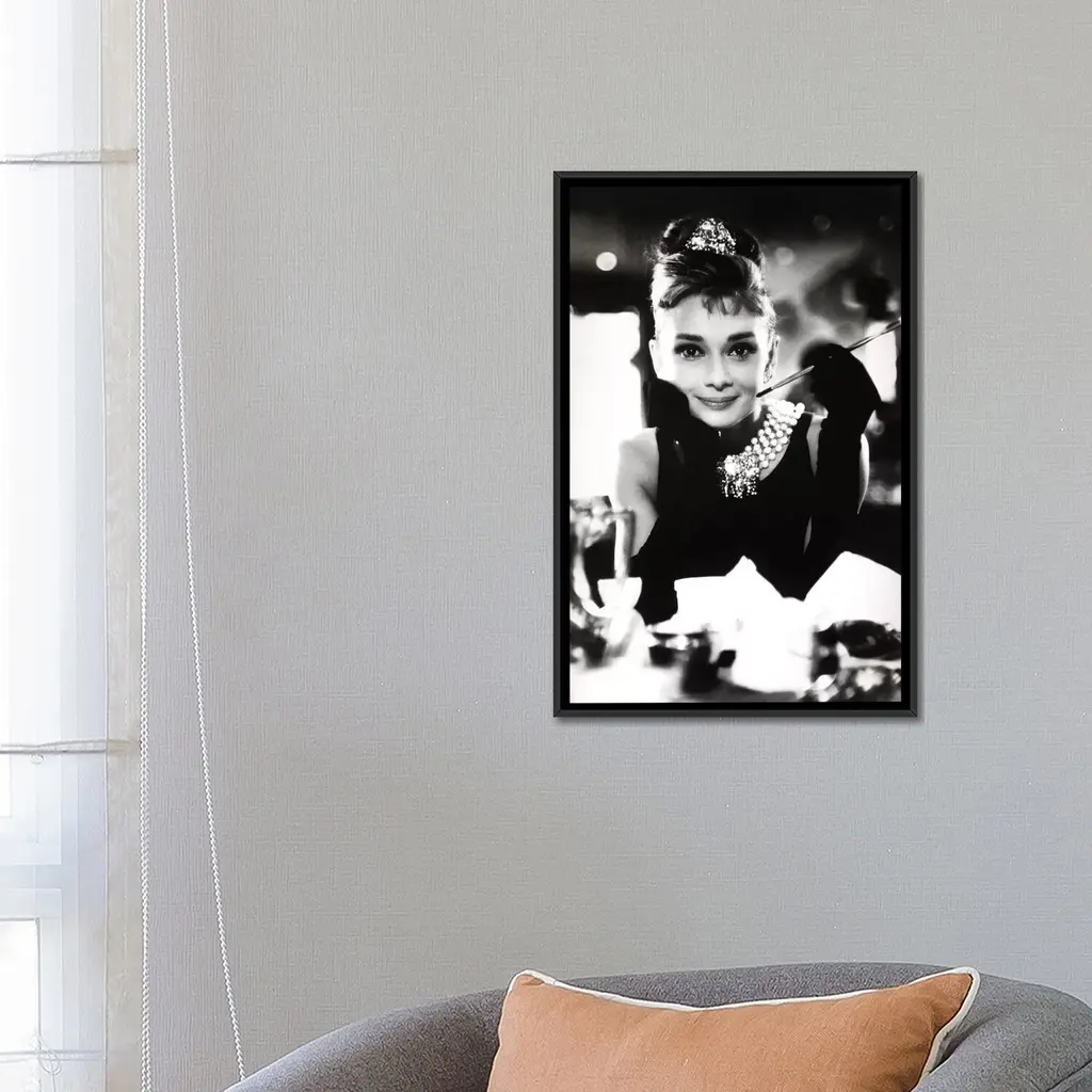 Icanvas "A Smiling Audrey Hepburn" By Radio Days Framed Canvas Print - Black - 26x18