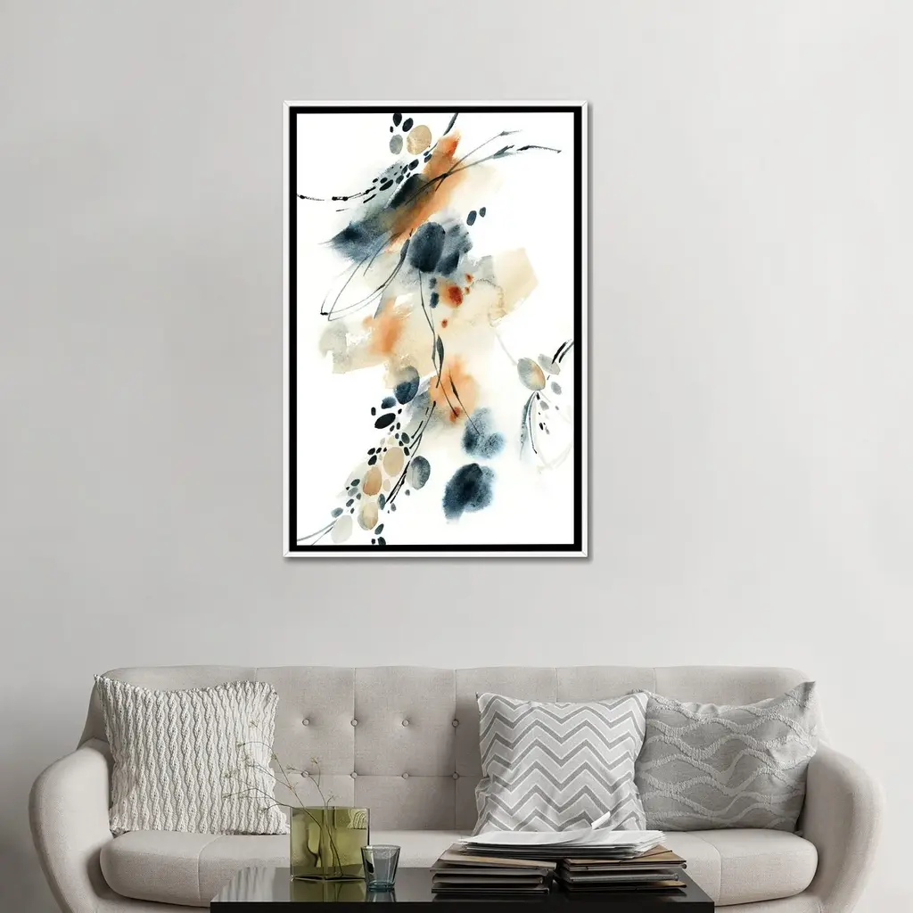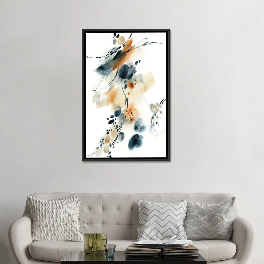 Icanvas "Abstract In Blue And Terracotta Iii" By Sophie Rodionov Framed Canvas Print - Black - 26x18
