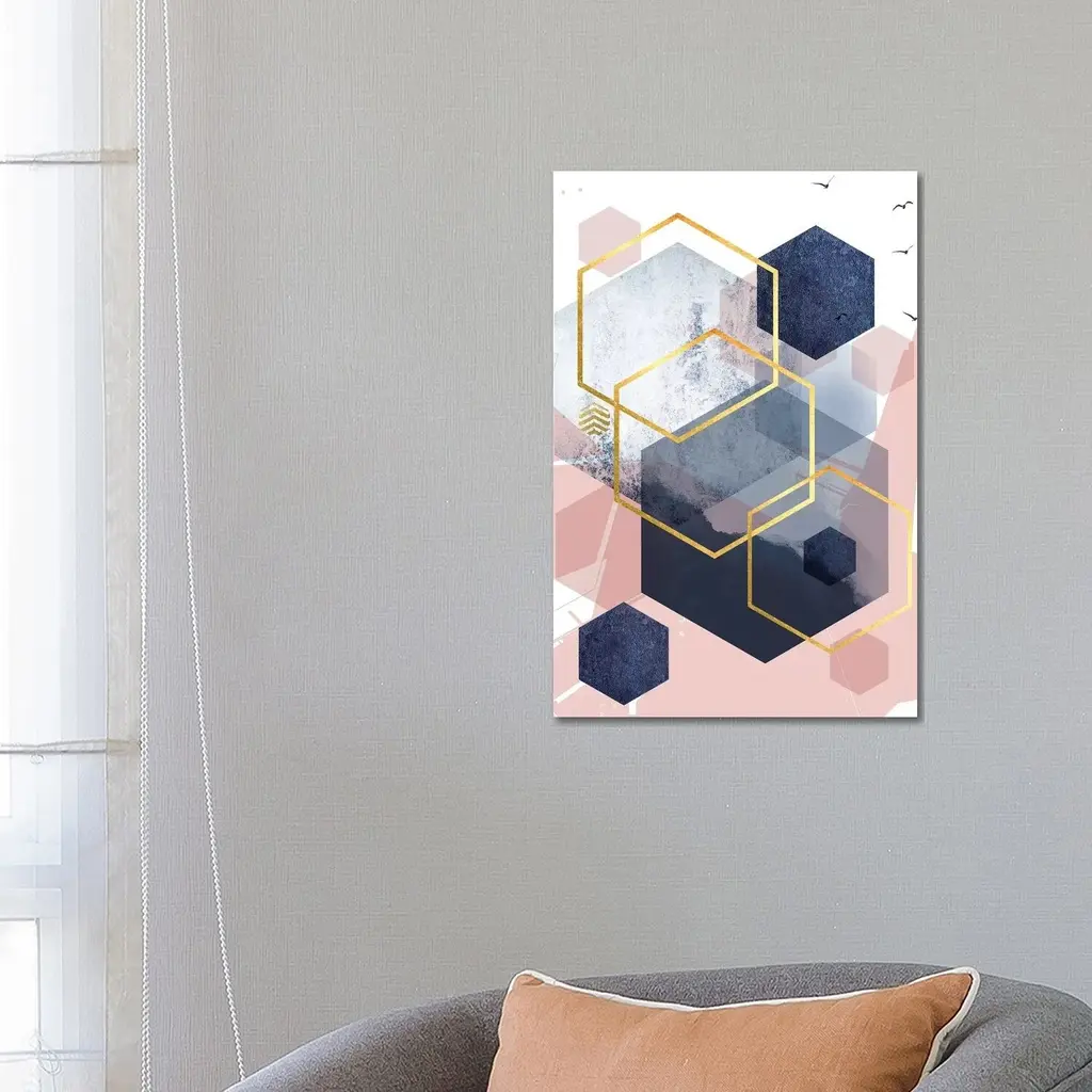 Icanvas "Abstract Navy Blush Gold I" By Urban Epiphany Canvas Print - 26x18x1.5
