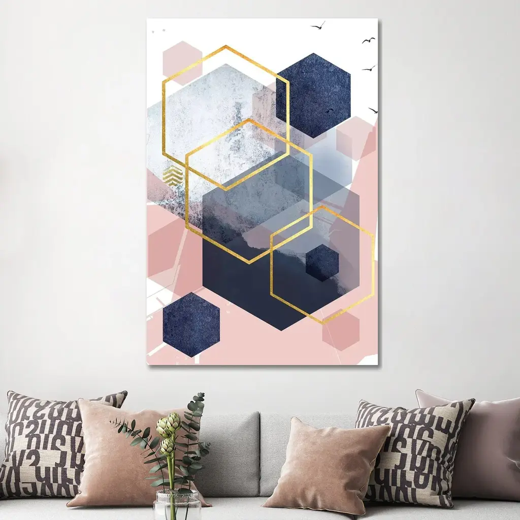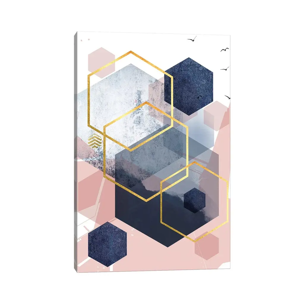 Icanvas "Abstract Navy Blush Gold I" By Urban Epiphany Canvas Print - 48x32x1.5