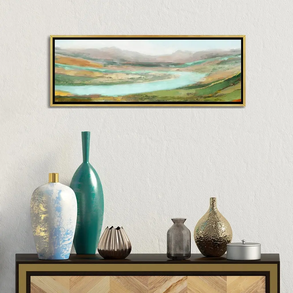 Icanvas "Aerial Landscape" By Edward Selkirk Framed Canvas Print - 12x36 - Gold