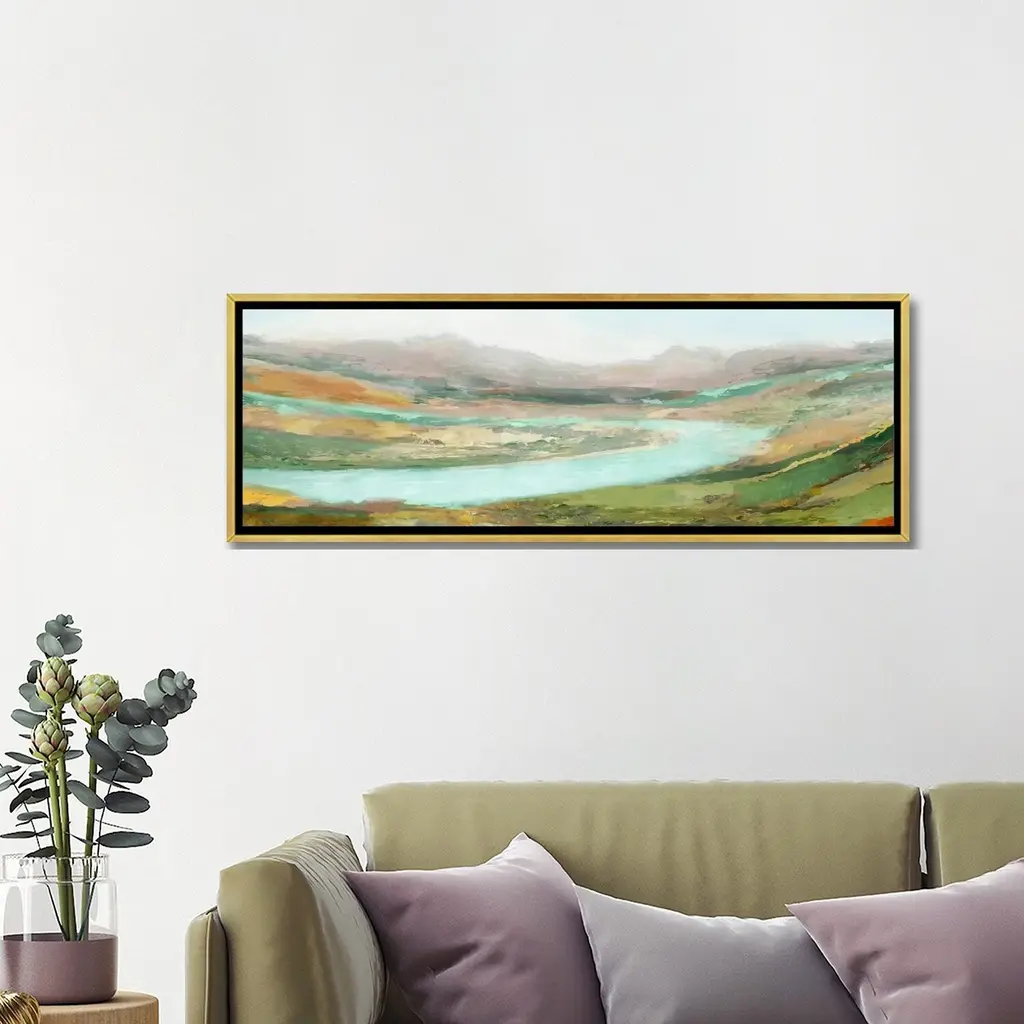 Icanvas "Aerial Landscape" By Edward Selkirk Framed Canvas Print - 16x48 - Gold