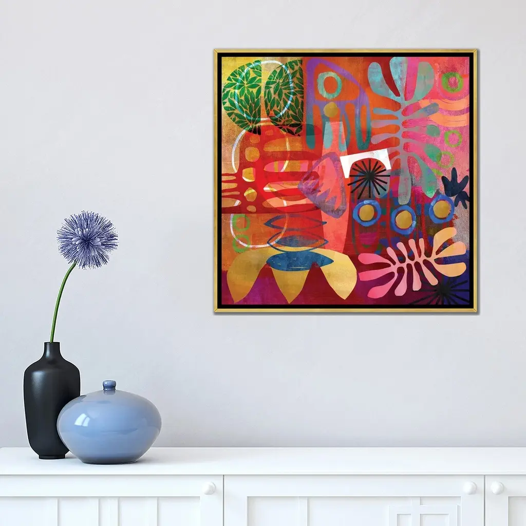 Icanvas "African Abstract" By Nikki Chu Framed Canvas Print - Gold - 37x37