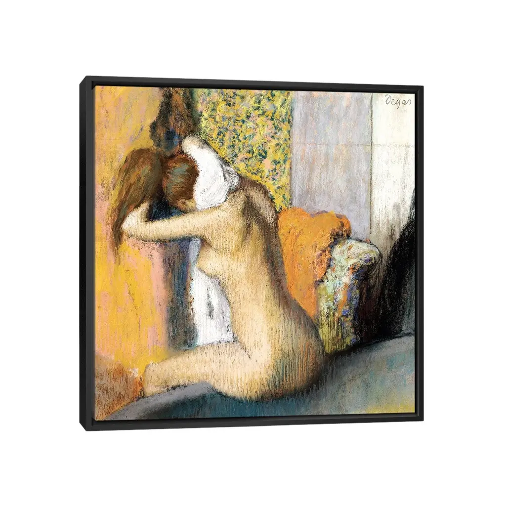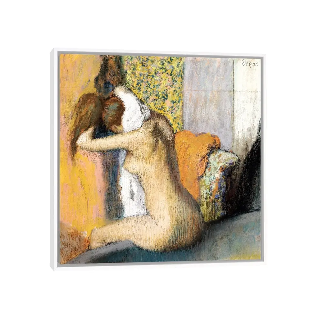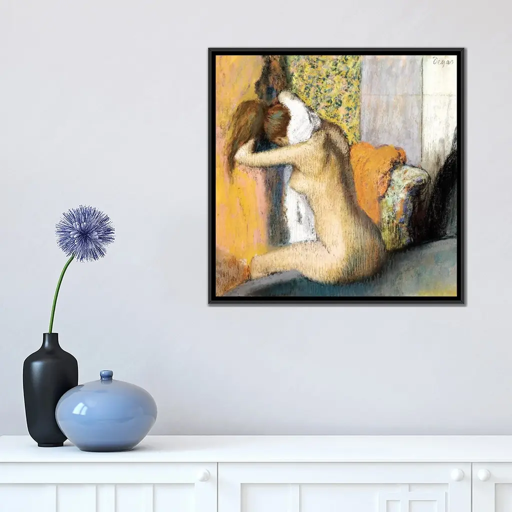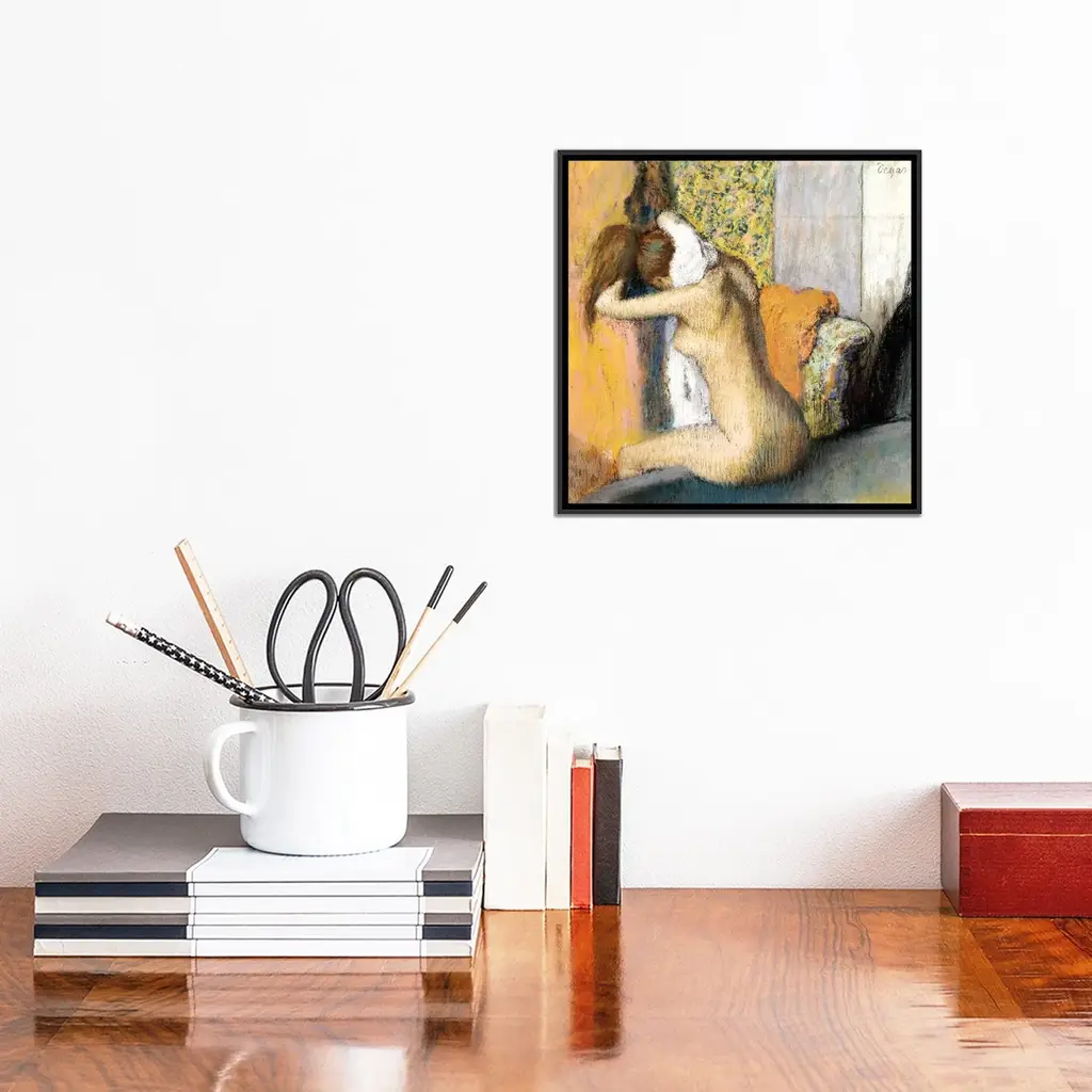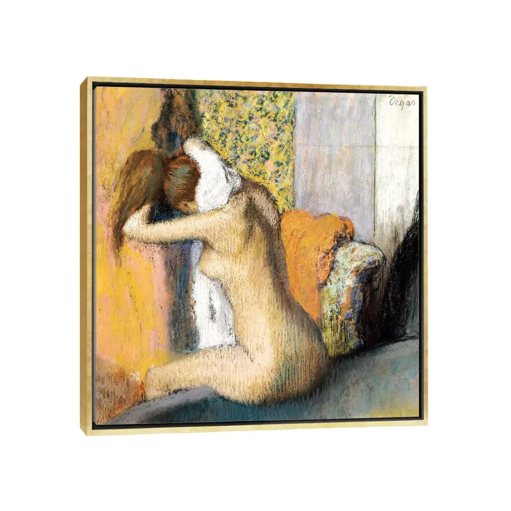 Icanvas "After The Bath, Woman Drying Her Neck, 1898" By Edgar Degas Framed Canvas Print - Gold - 26x26