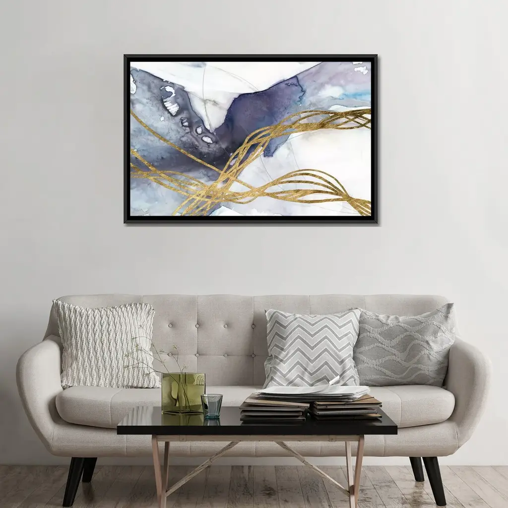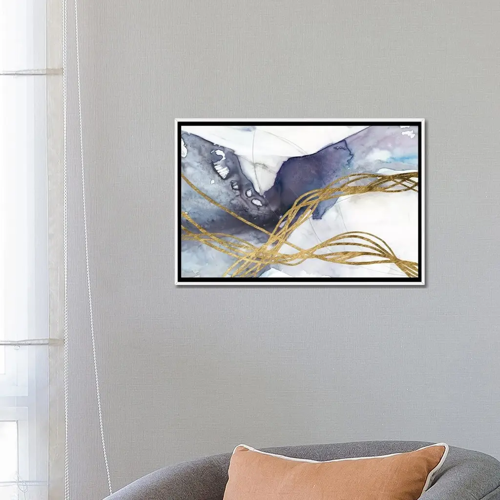Icanvas "Agate Wave Iv" By Jennifer Goldberger Framed Canvas Print - Gold - 32x48