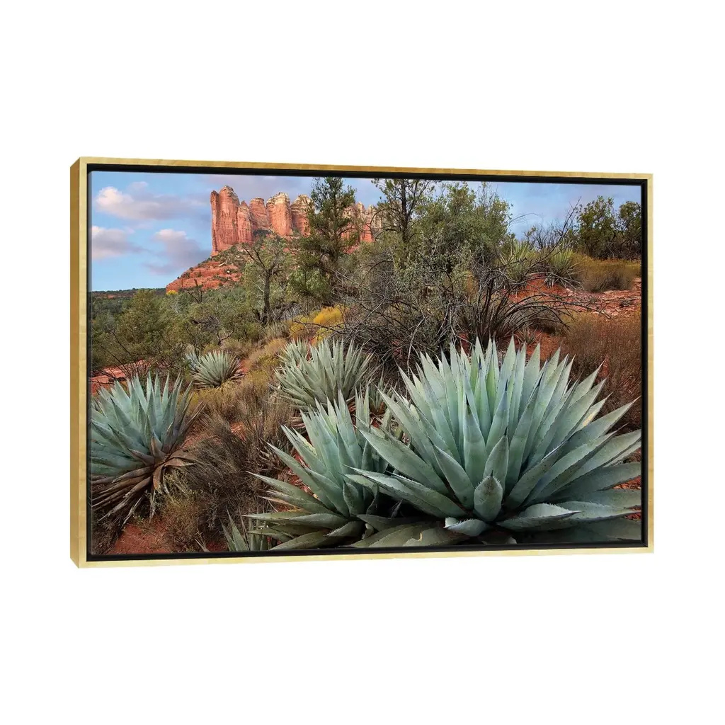 Icanvas "Agave And Coffee Pot Rock Near Sedona, Arizona" By Tim Fitzharris Framed Canvas Print - Gold - 18x26