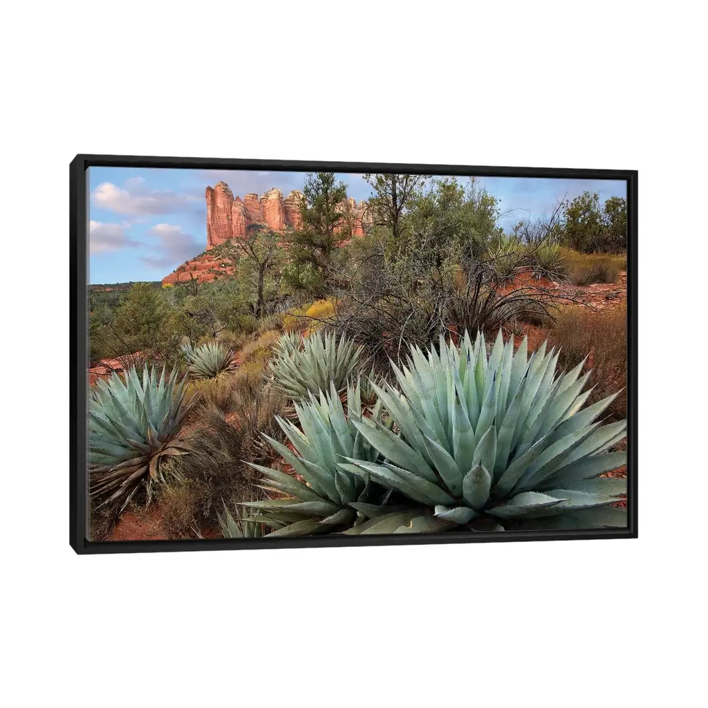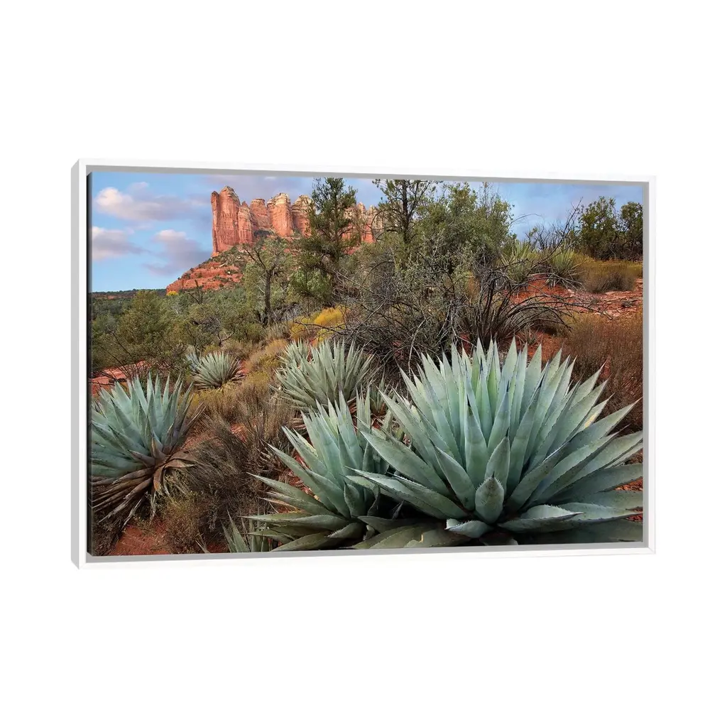 Icanvas "Agave And Coffee Pot Rock Near Sedona, Arizona" By Tim Fitzharris Framed Canvas Print - White - 18x26