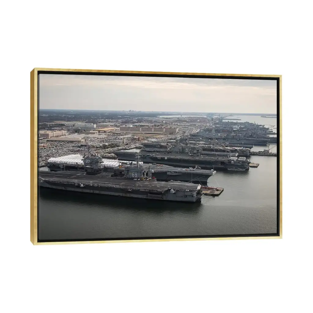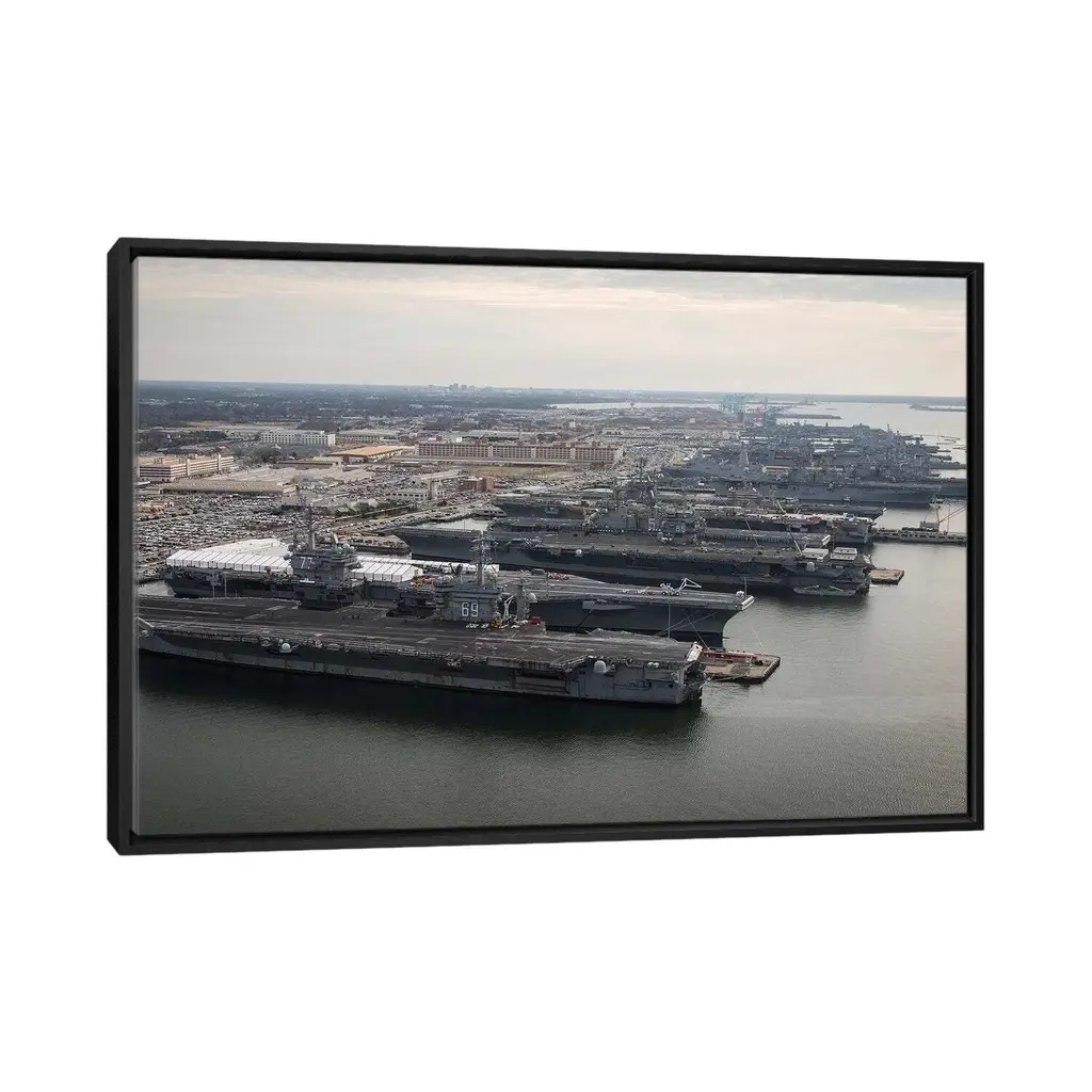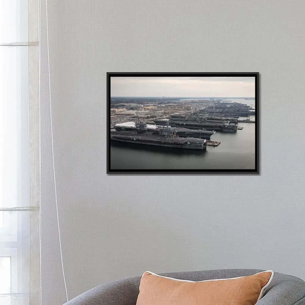 Icanvas "Aircraft Carriers In Port At Naval Station Norfolk, Virginia I" By Stocktrek Images Framed - White - 18x26