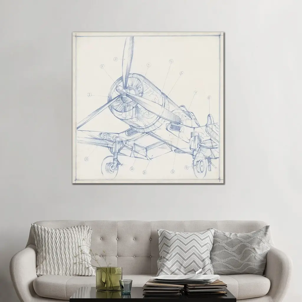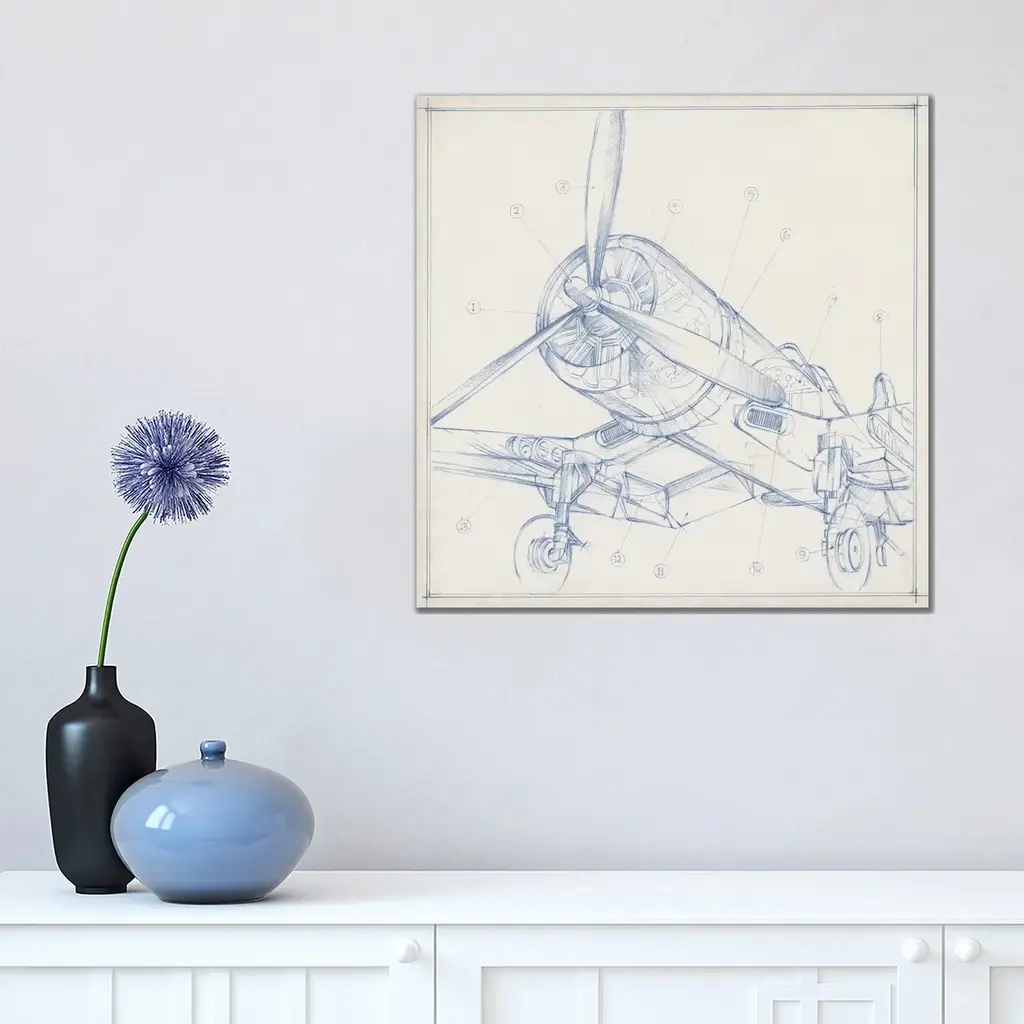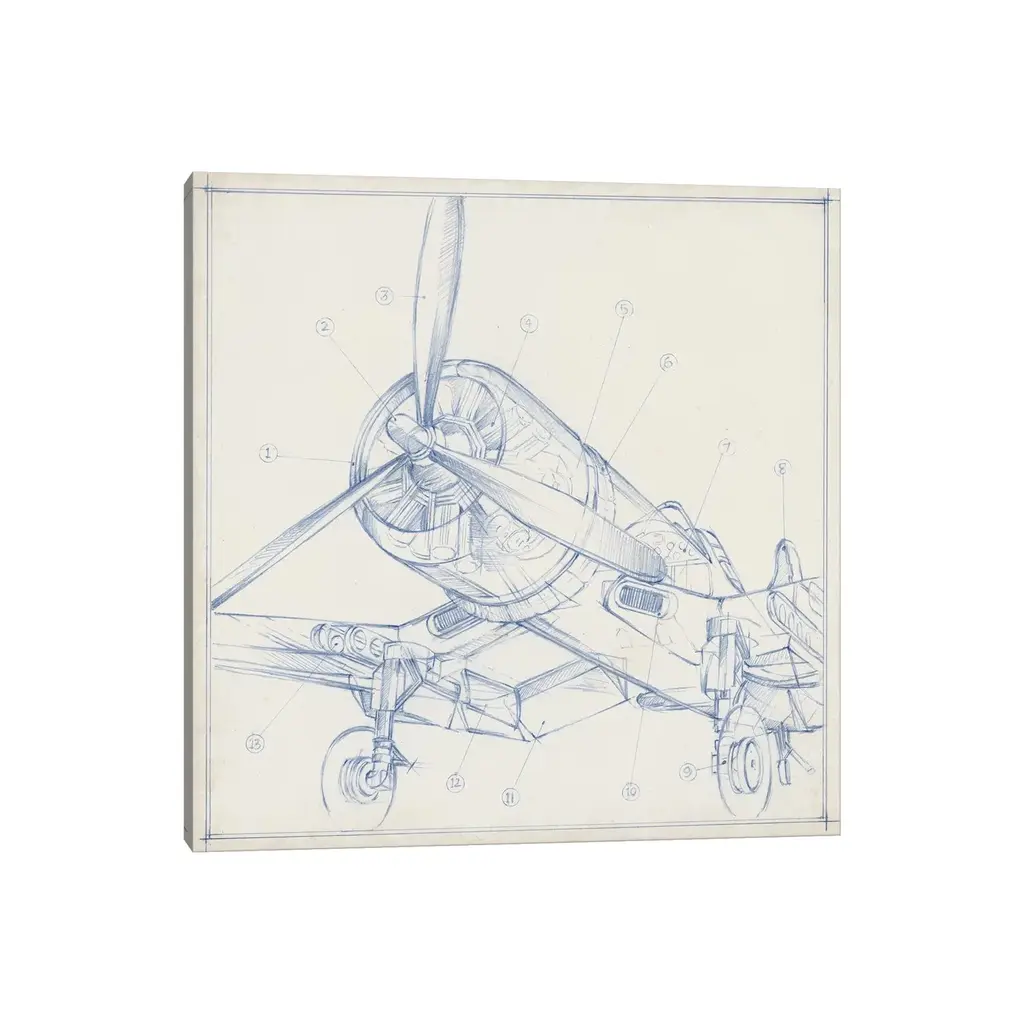 Icanvas "Airplane Mechanical Sketch Ii" By Ethan Harper Canvas Print - 12x12x0.75