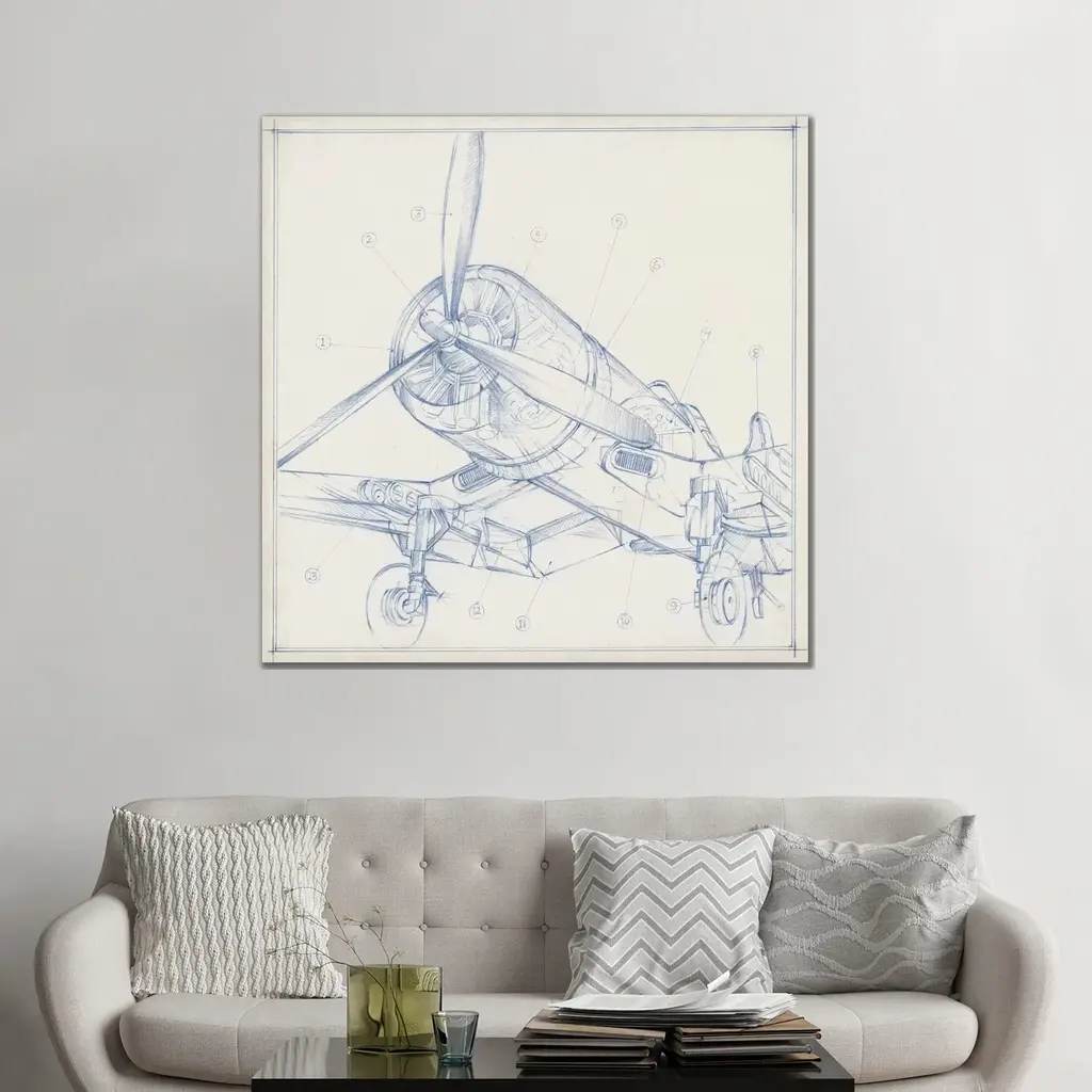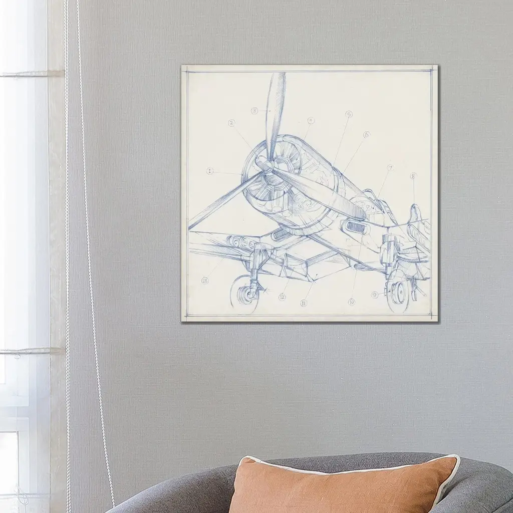 Icanvas "Airplane Mechanical Sketch Ii" By Ethan Harper Canvas Print - 18x18x1.5