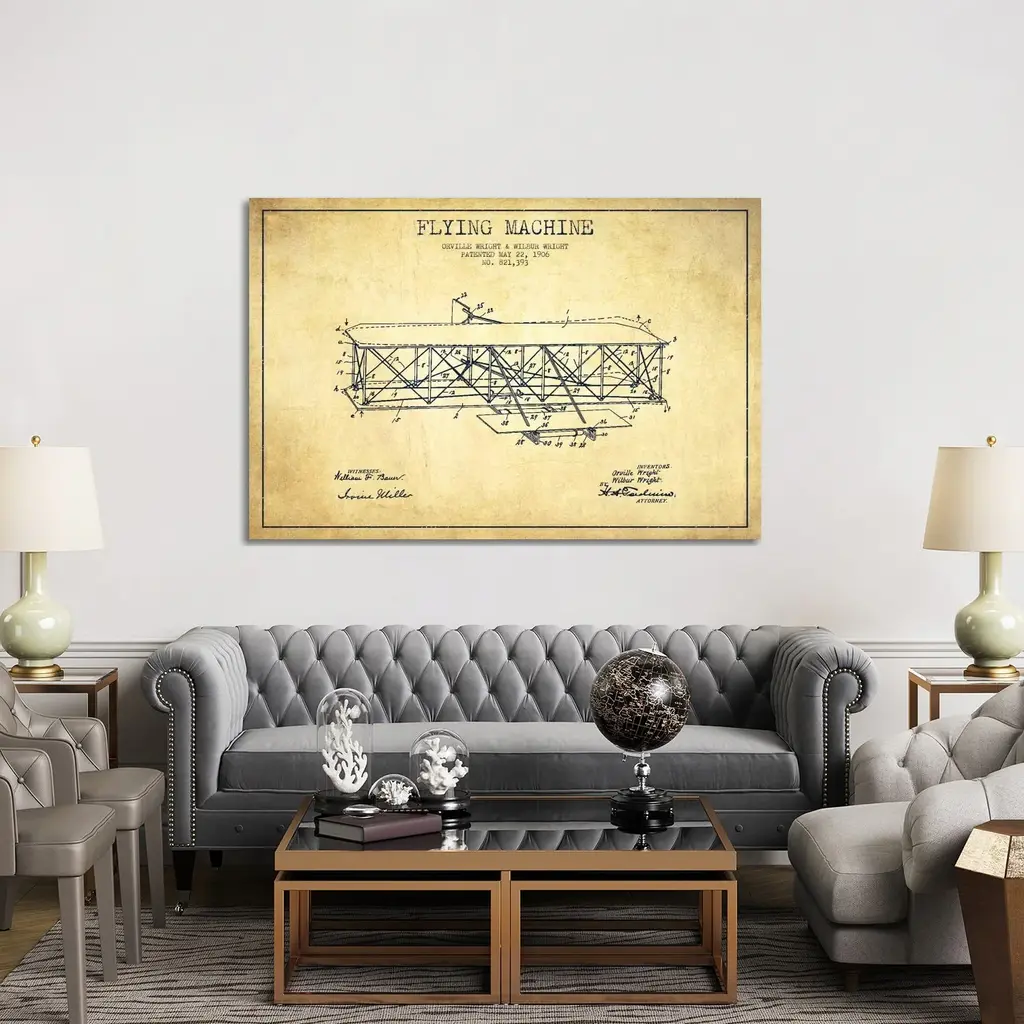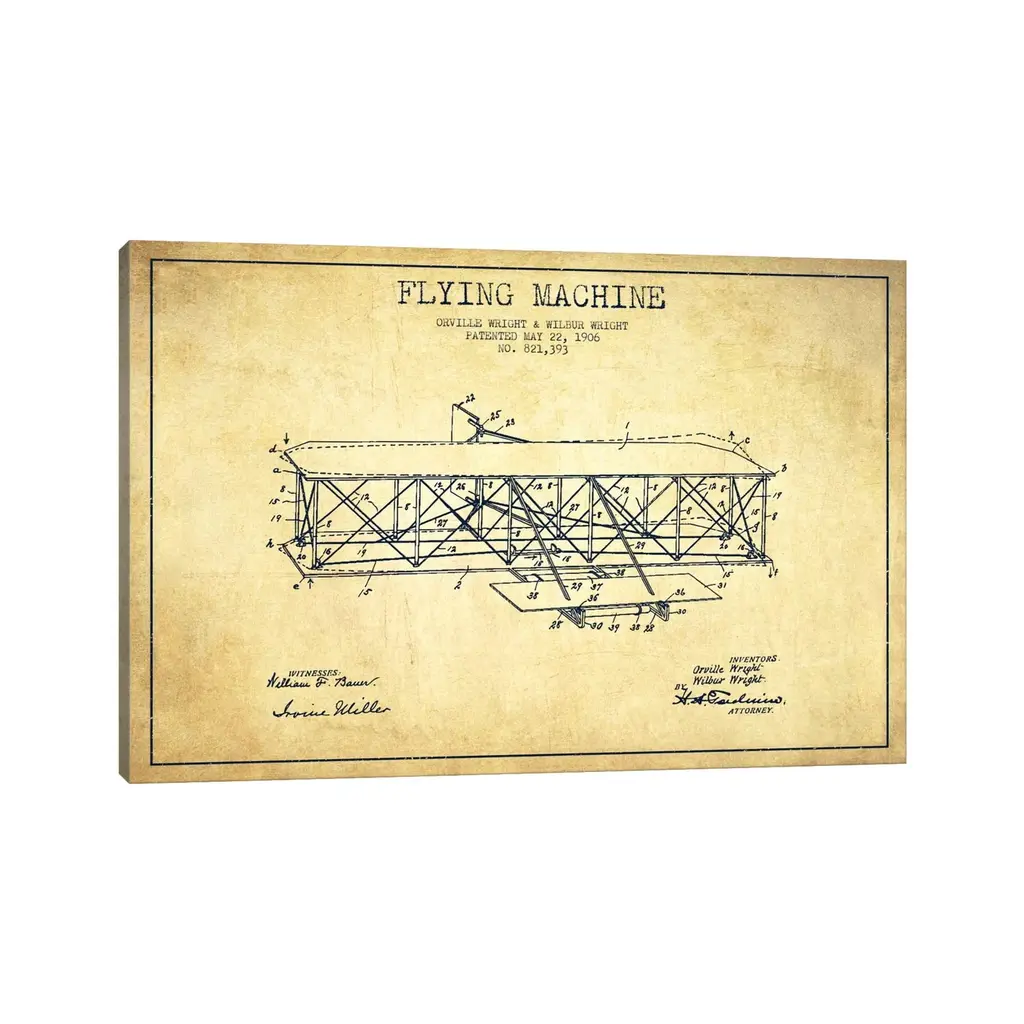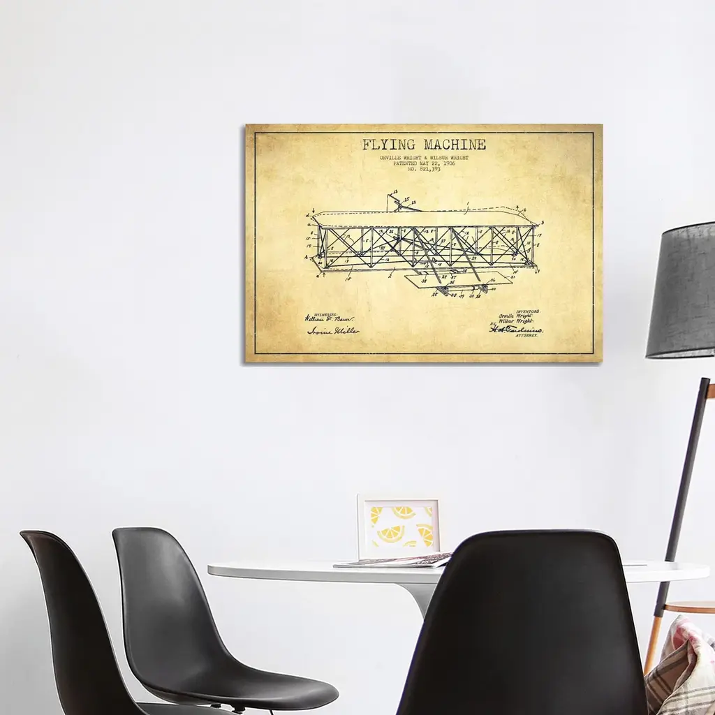 Icanvas "Airplane Vintage Patent Blueprint" By Aged Pixel Canvas Print - 8X12x0.75