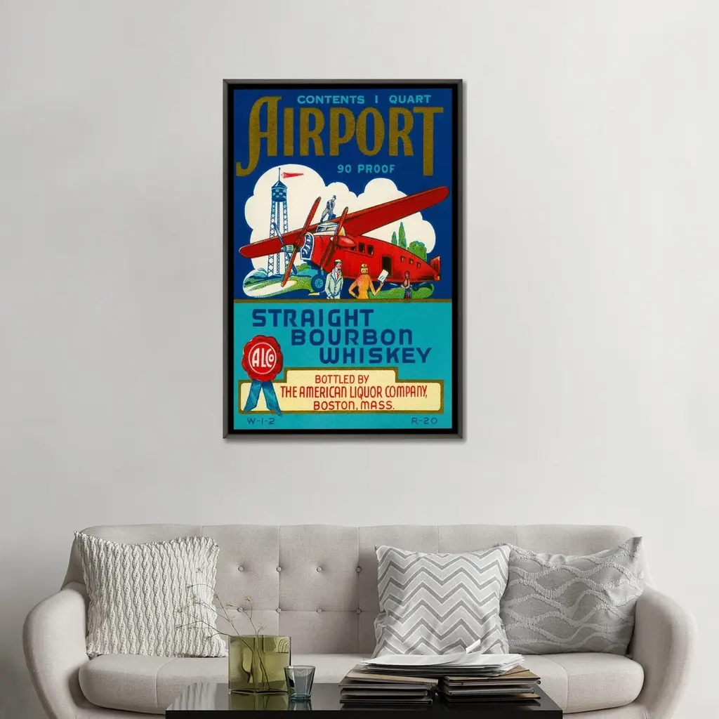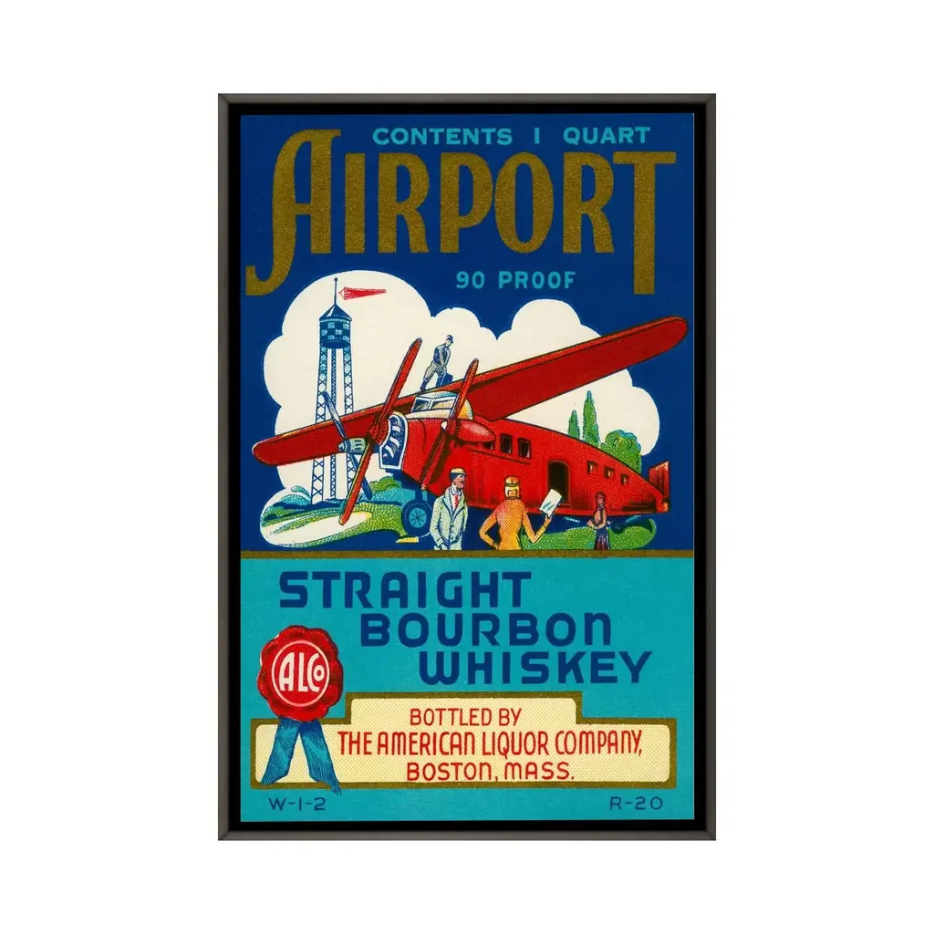 Icanvas "Airport Bourbon Whiskey" By Print Collection Framed - Charcoal - 48x32