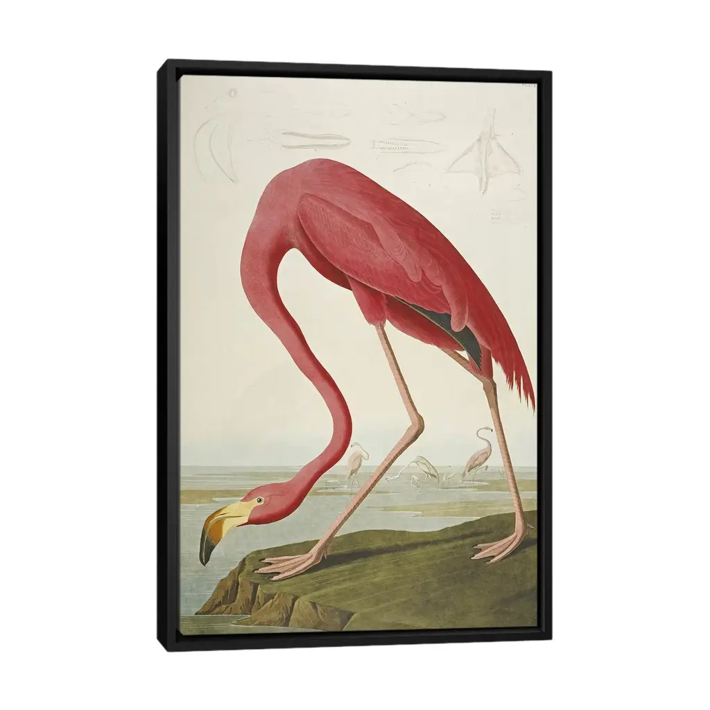 Icanvas "American Flamingo" By John James Audubon Framed Canvas Print - Gold - 48x32
