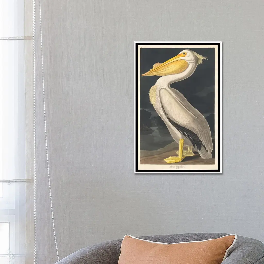 Icanvas "American White Pelican" By John James Audubon Framed Canvas Print - Black - 40x26